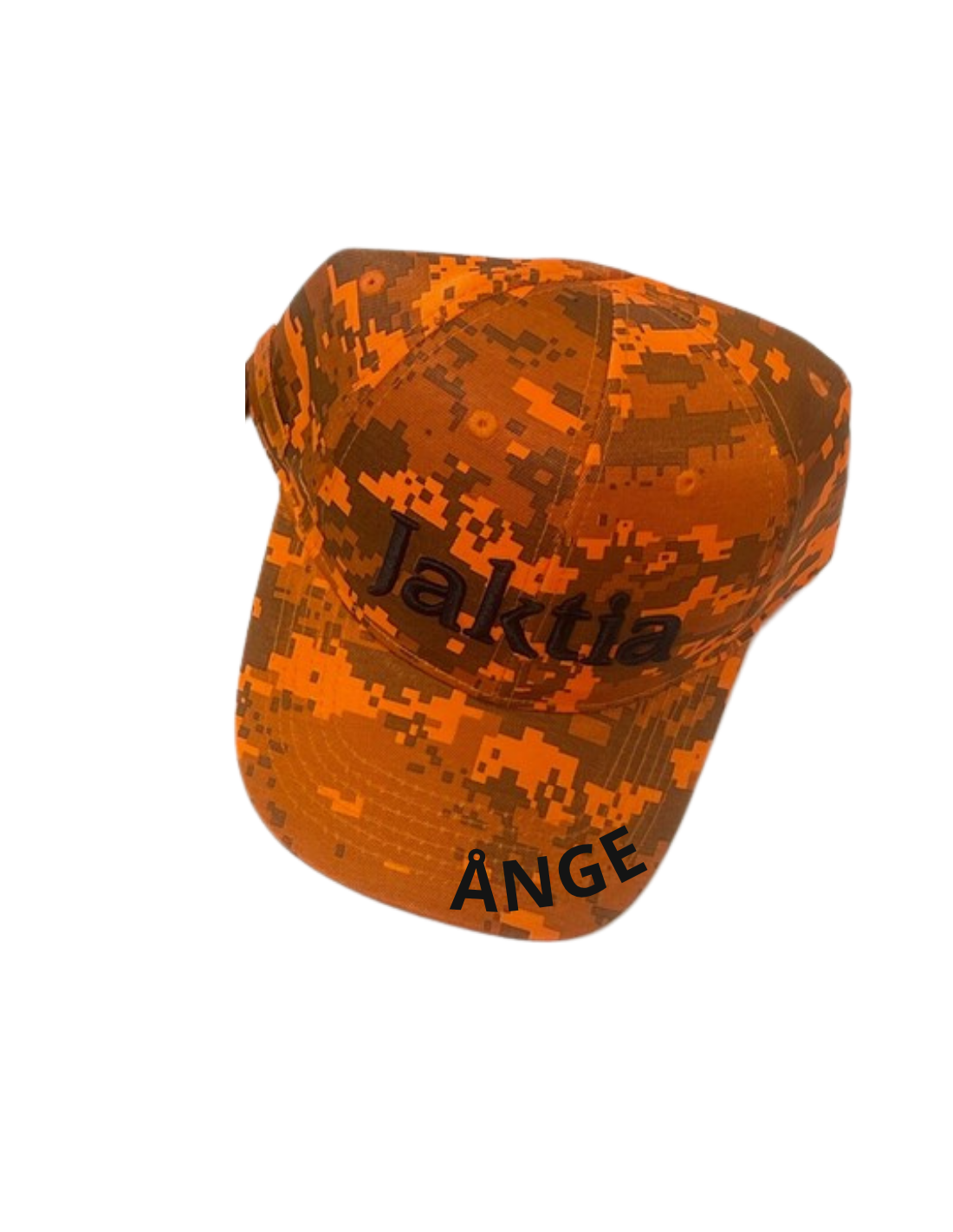 Jaktkeps med pixel-mönster och Jaktia-logotype.