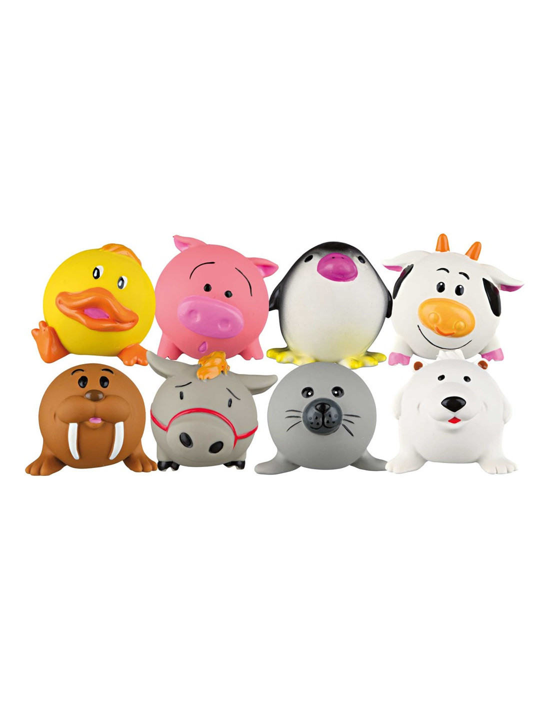 Latexdjur i bollform med polyesterfleece fyllning.