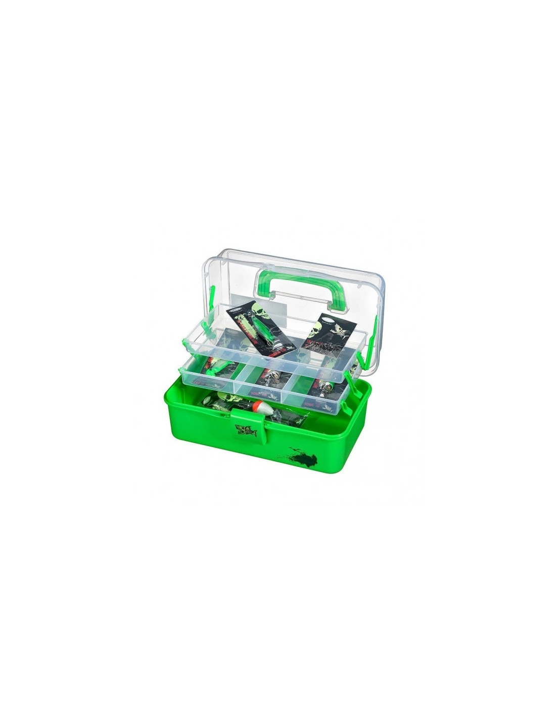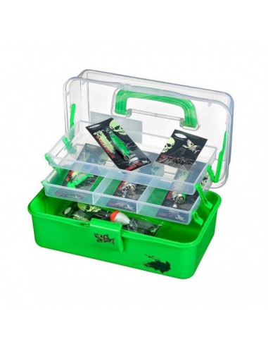 Fiskelåda i två plan med tillbehör för insjöfiske.