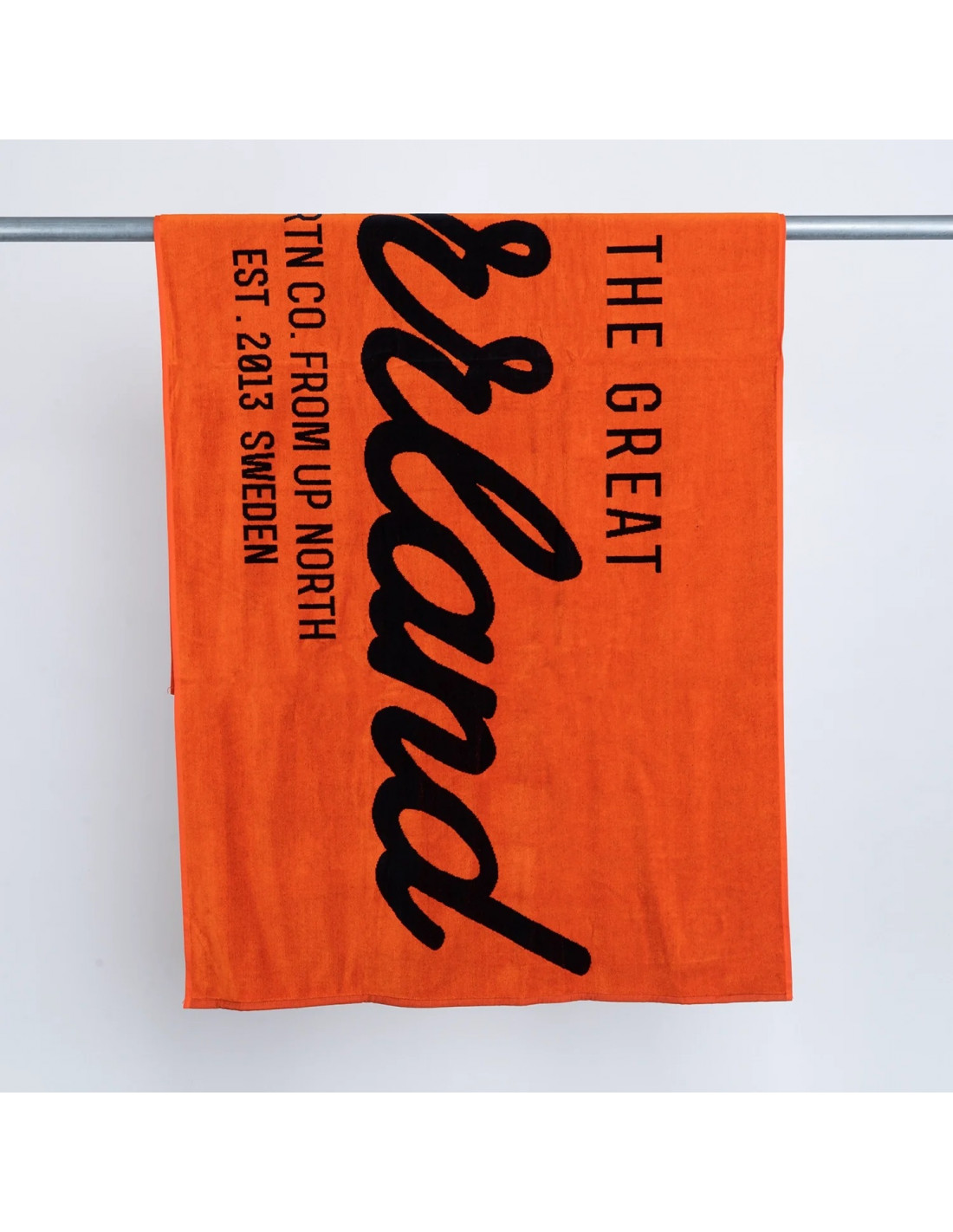 Stort badlakan med måtten 180 x 90 cm med invävd logotyp.