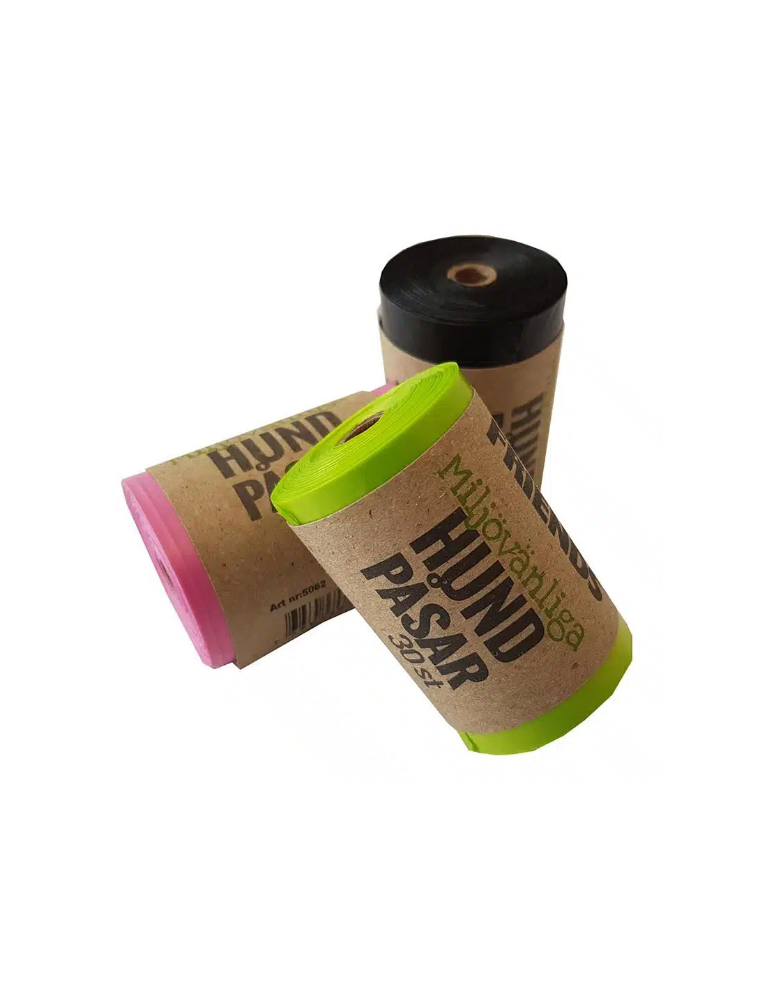 Tillverkas av 100% återvunnen plast. Nedbrytningsbara. Vid förbränning sker ingen negativ miljöpåverkan. Levereras osorterat.