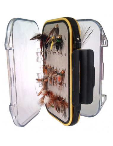 Dubbelsidig och vattentät med 8 st nymfer och 7 torrflugor.