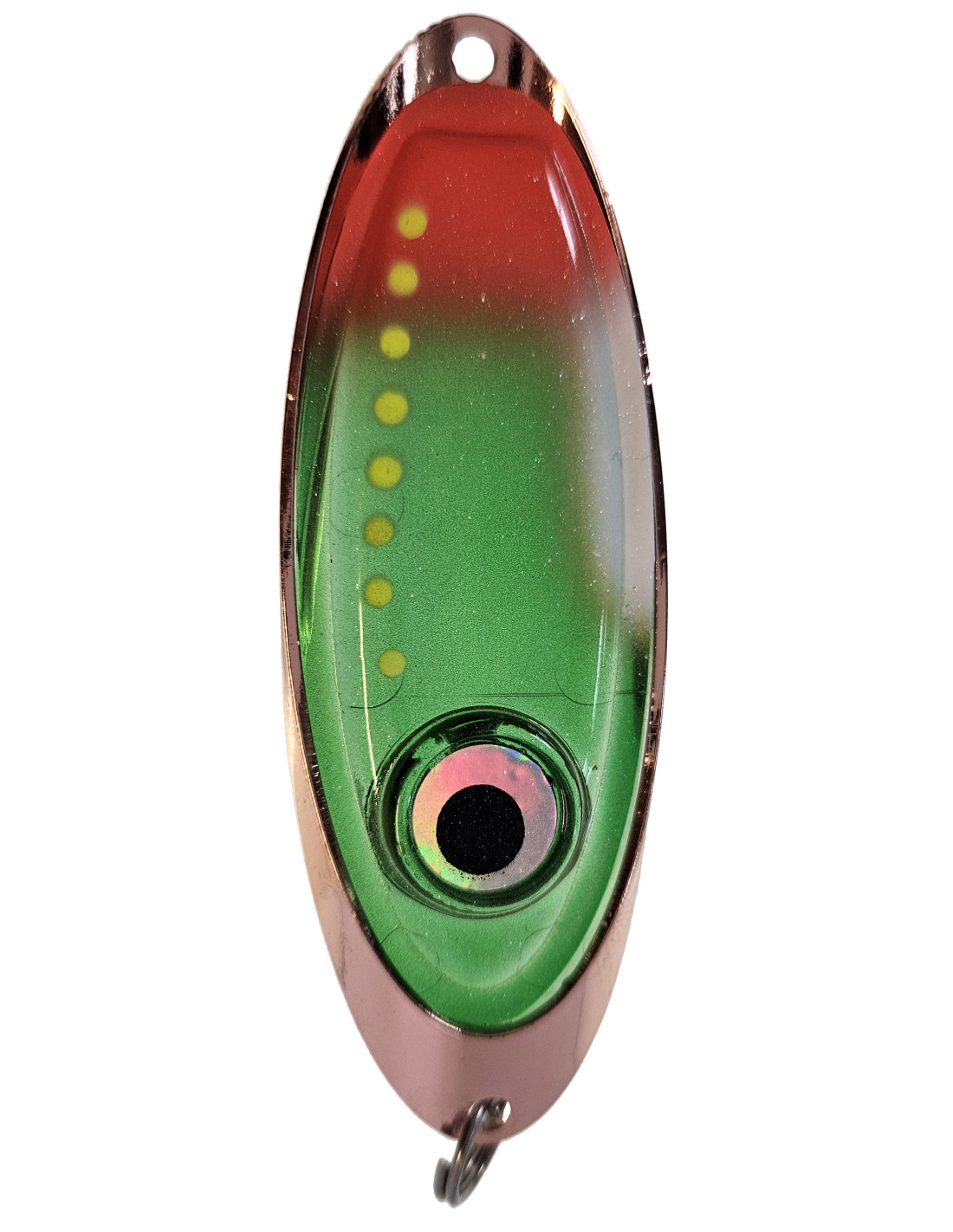 Kopparfärgad metallram och fem olika färger på plastkroppen med dubbla lysdioder i olika färger erbjuder pirk för olika tillfällen och vatten.