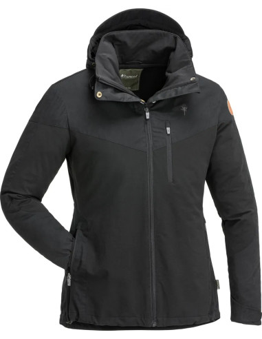 Pinewood Womens Finnveden Hybrid Jacket är en följsam och mångsidig friluftsjacka i dammodell med outstanding komfort och hög stretch. Fodrad med luftig High-Ventilation™ mesh foder för god luftcirkulation och värmeisolering. Jackan har vaxade partier längs axlar och ärmar, resten med hög stretch för att du ska kunna använda den mycket och länge. En bekväm jacka att bära i rörelse och vid aktivitet. Försedd med avtagbar och reglerbar huva med skärm. Rymliga fickor med dragkedja. Samt något tightare passform.