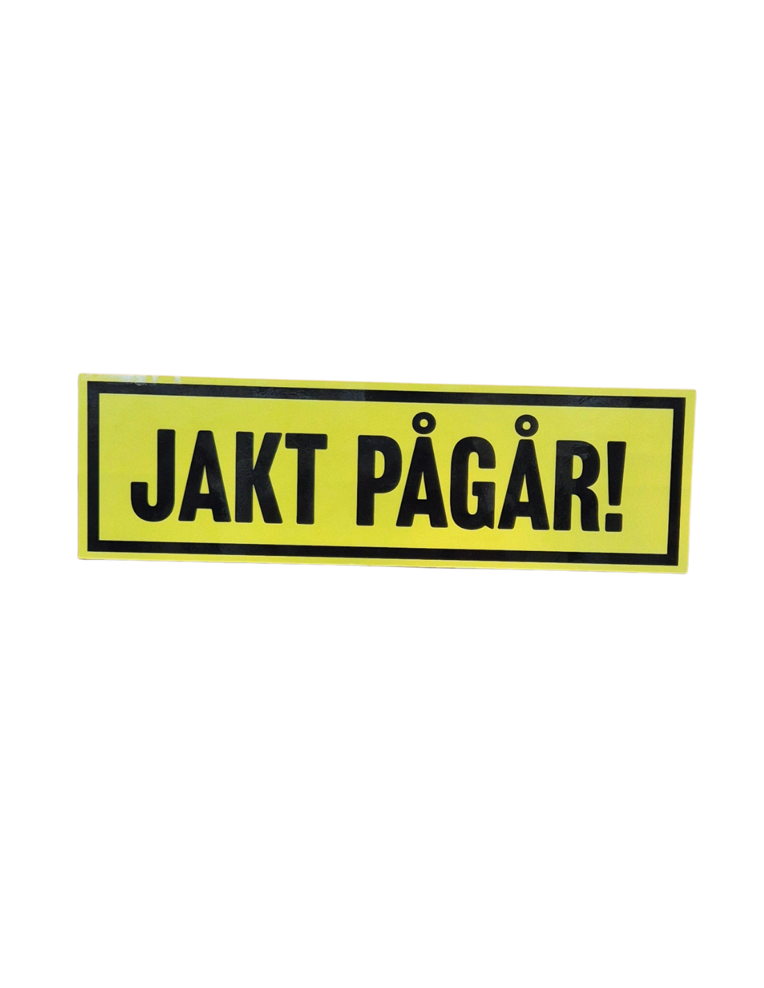 Dekal (klistermärke) printad på reflex med texten "Jakt Pågår"