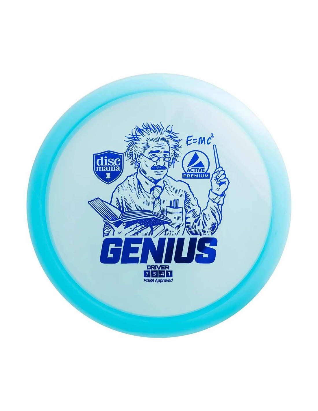 Genius är den mest nybörjarvänliga drivern i Discmania Active-serien. Genius är designad för att flippa och flyga, och har enorma mängder sväng, vilket gör den till den optimala discen för både nybörjare och alla som letar efter en disc som kan göra mer. Tack vare sina unika flygegenskaper kan Genius fylla en mängd olika slag i bagen, vilket gör den till en optimal driver för alla spelare. Genius använder sin massiva sväng för att skära slag i luften, navigera i snäva linjer och till och med förvandlas till en roller som river ner fairwayen.