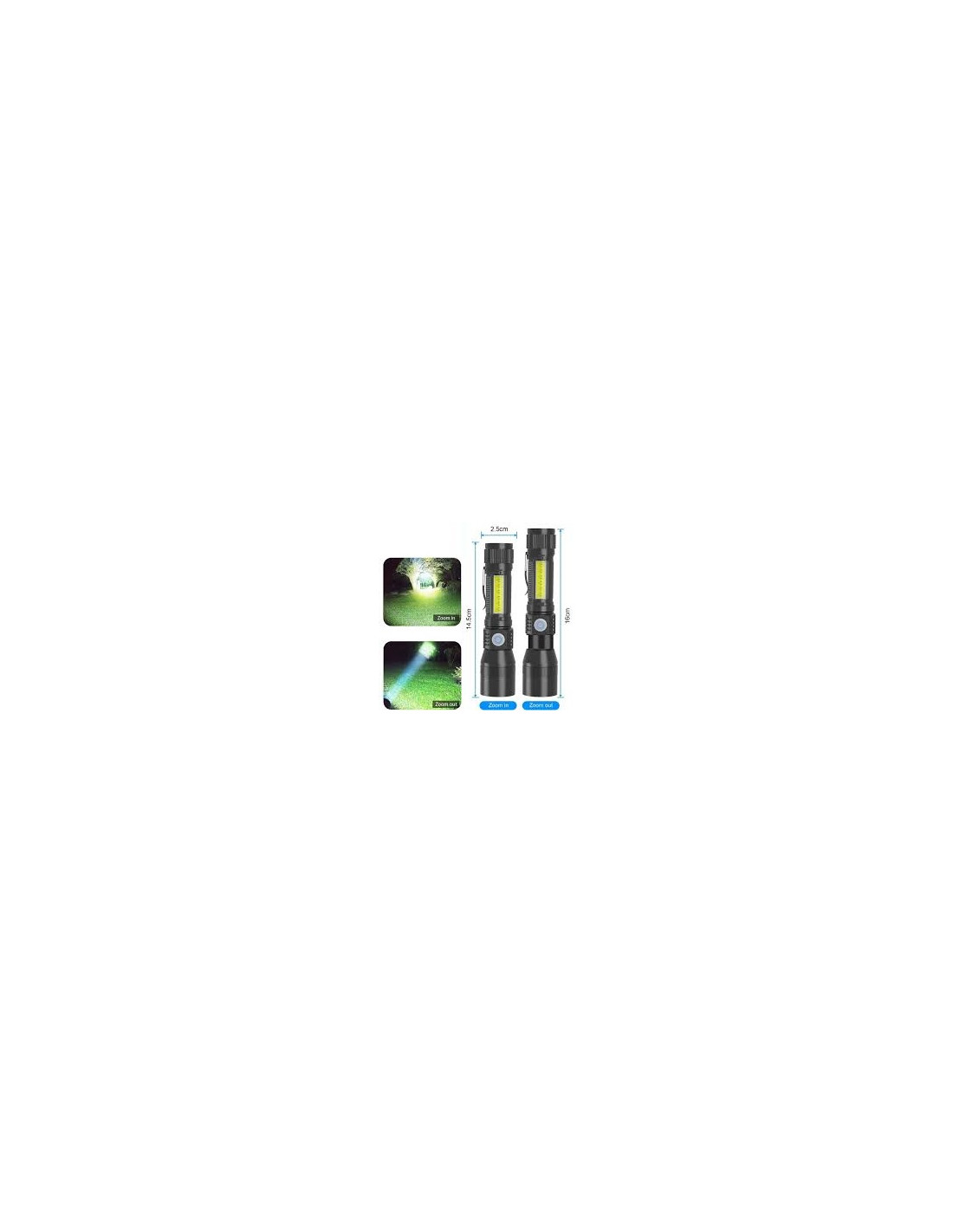 Denna ficklampa är utrustade med en kraftfull T6 och en Cob arbetsbelysning i handtaget.