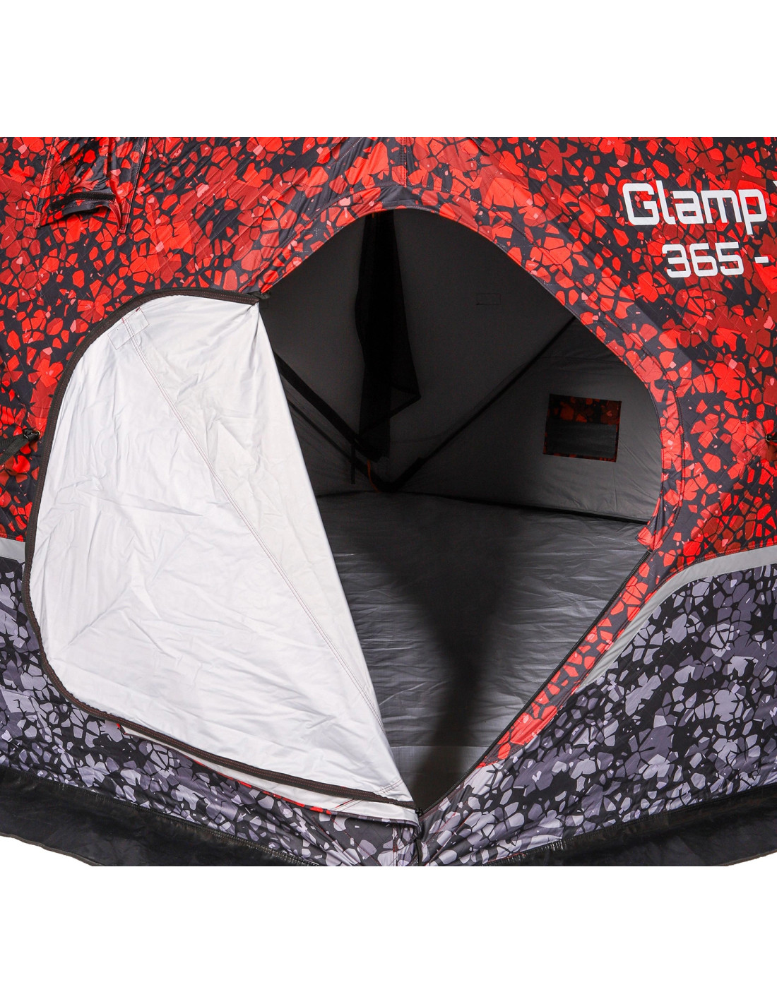 IFISH Glamp X 365-6 är ett åretrunt tält för upp till 6 personer, gjort i tåligt 600D nylon. Tältet har 8 mörkläggningsbara fönster, 2 dörrar och myggnät för maximal komfort, samt kraftiga stormlinor och förbättrad ventilation.