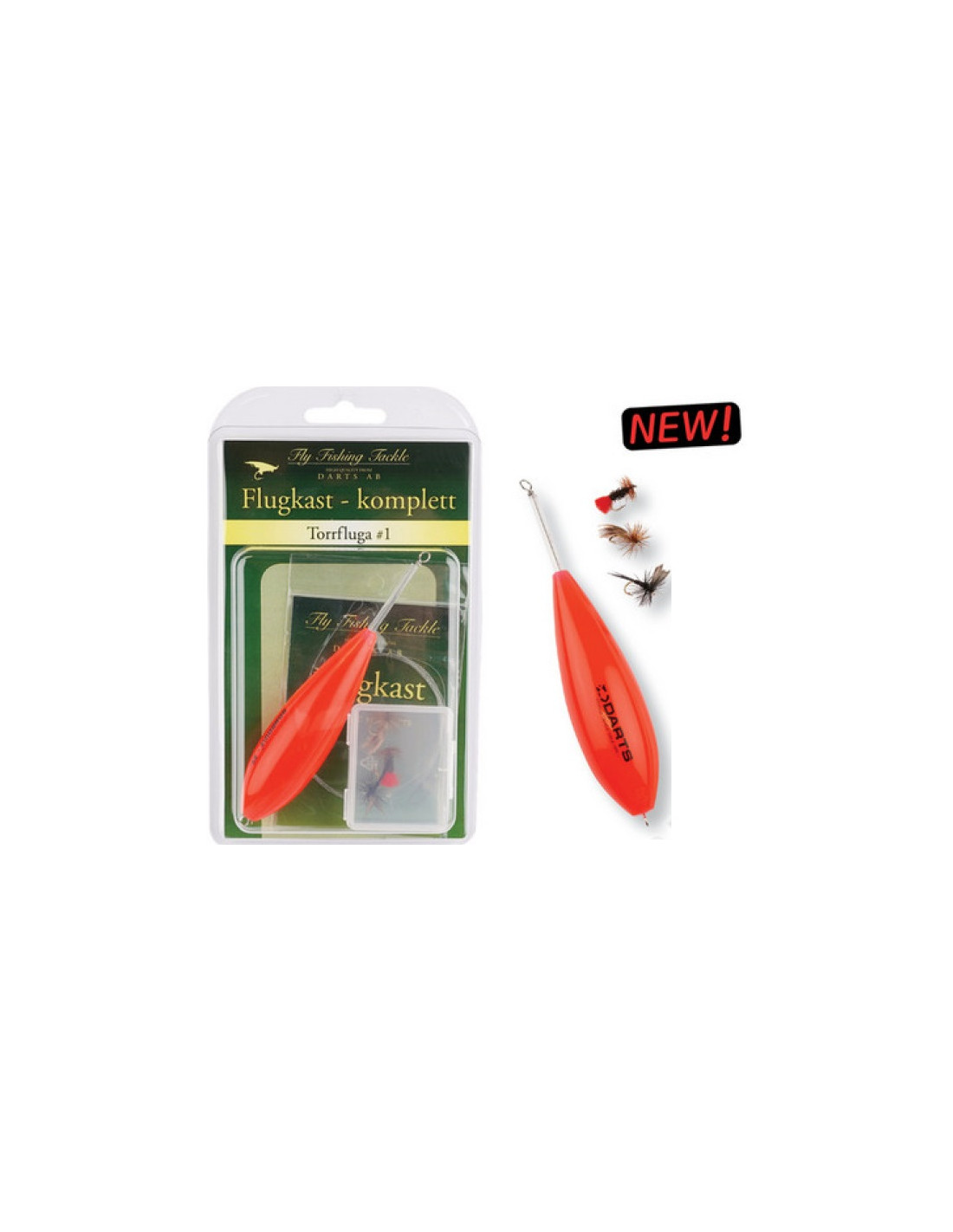 Flugkast komplett levereras med bomboule, tafs i en smidig ask. Att fiska med flugkast är en mycket effektivt och spännande metod och ett klassiskt sätt att fånga harr, öring och röding. Darts flugkast är knutna med snappers som gör det enkelt att montera sina favoritflugor och finns i ett flertal fångstgivande flugmönster-set.