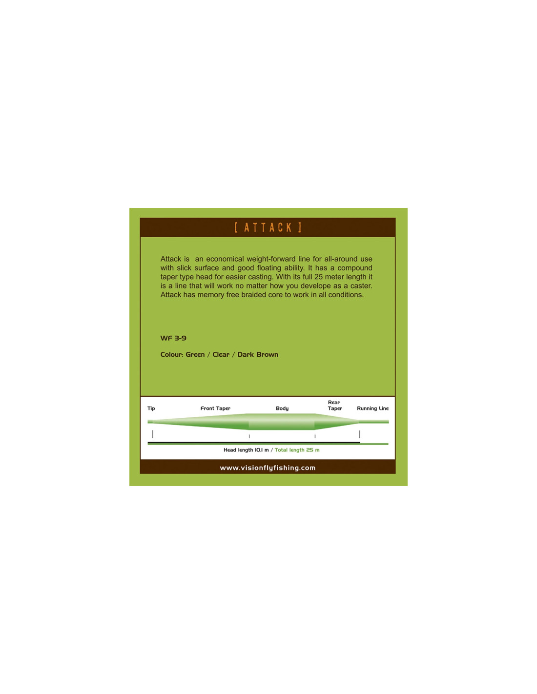 En lina som ursprungligen är gjord för att vara synlig, smidig och som har en god vändningssförmåga för att tjäna både nybörjare och avancerade fiskare. Resultatet blev att Visions proffs nästan slet dessa linor ur händerna på oss bara för att täcka alla situationer med olika angreppsmetoder. Det är därför Vision kallar den här linan för en riktig allroundlina.