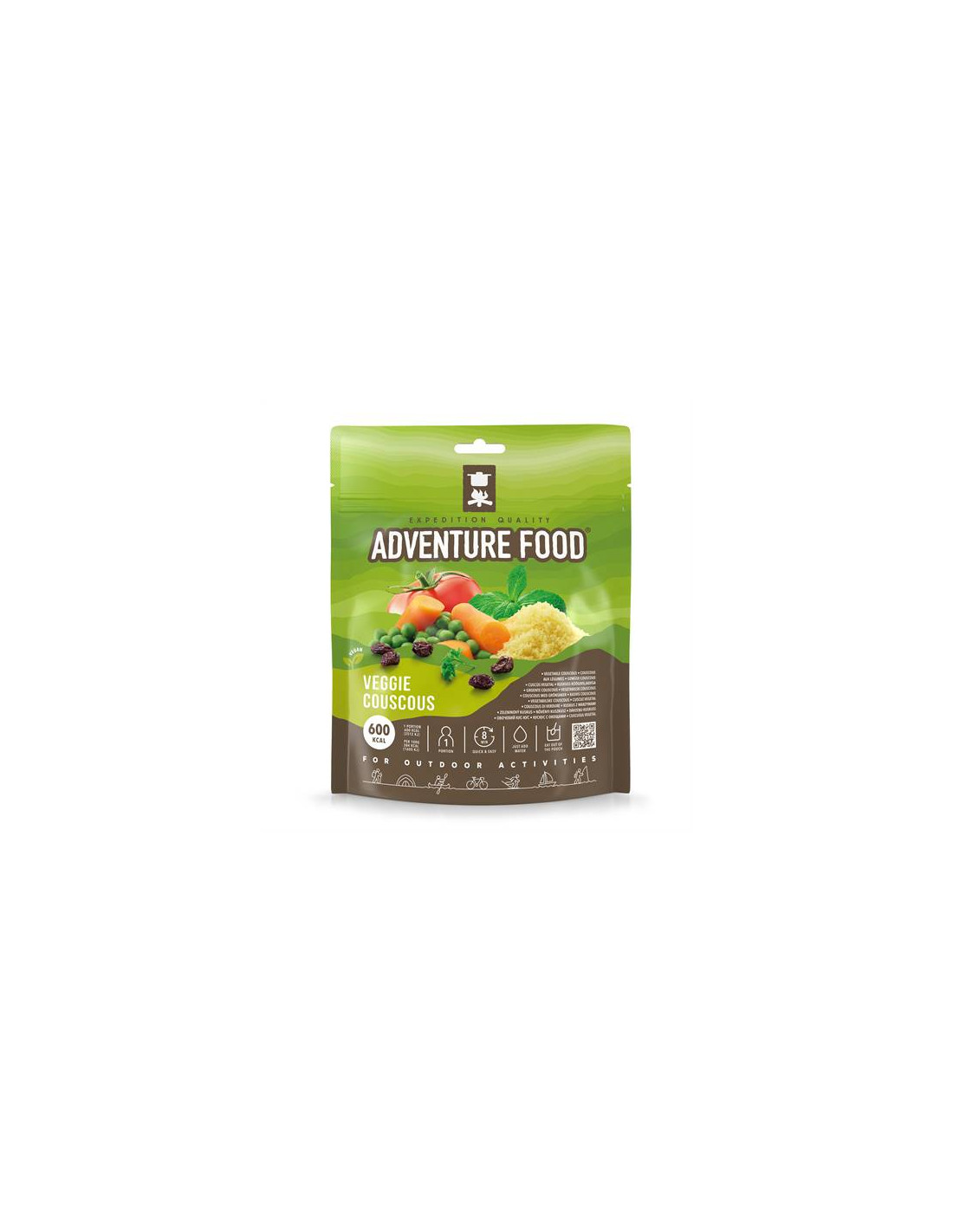 Fyll på energidepån efter dagens ävenyr med en vegetarisk måltid från Adventure Food. Couscous med grönsaker innehåller gluten. Kan innehålla spår av jordnötter, nötter.