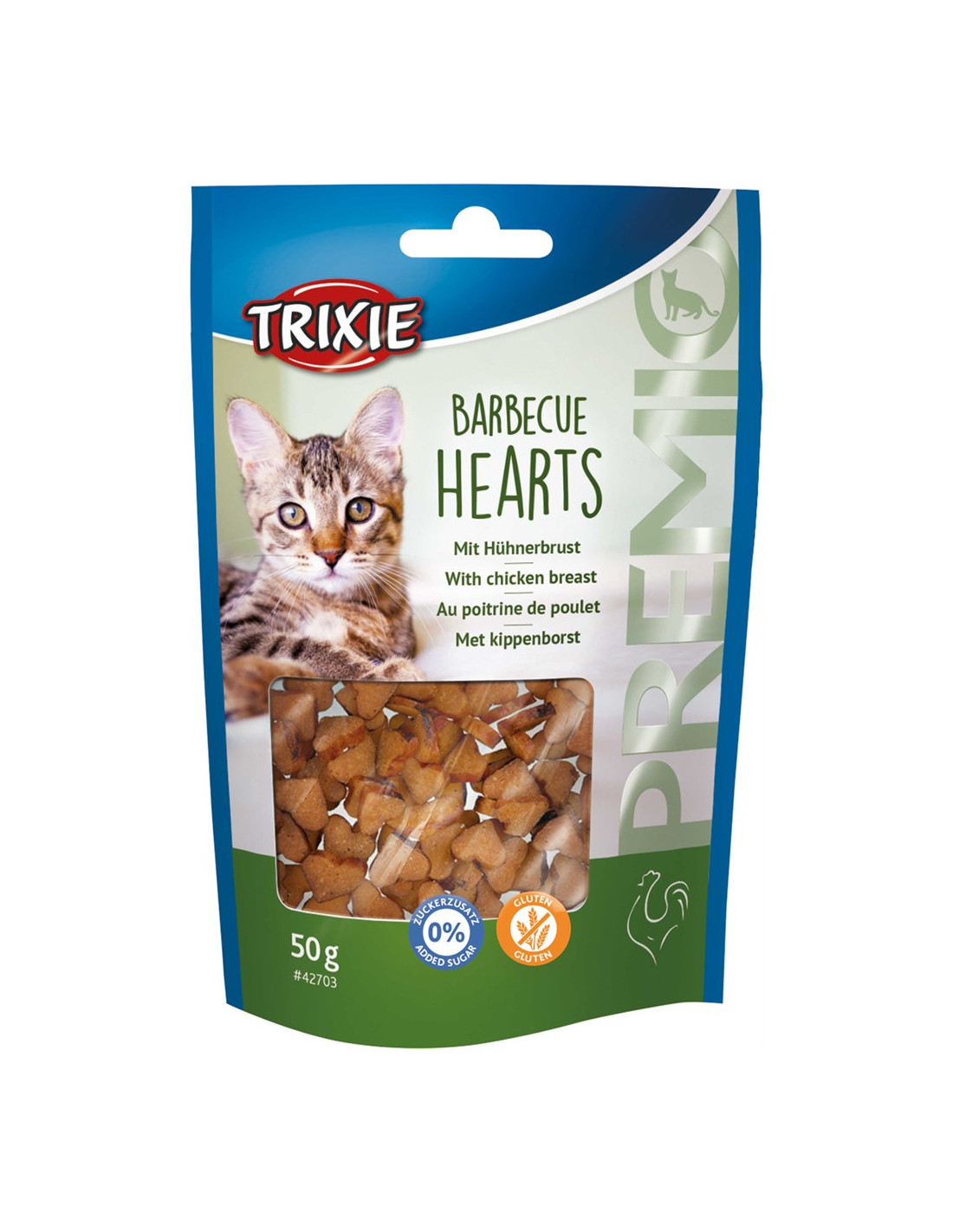 Smakligt godis ifrån Trixie i form utav hjärtan gjorda av kycklingbröst, perfekt snacks för katten vid kvällsmyset i soffan. Godis med hög kötthalt utav tillsatt socker och glutenfritt.