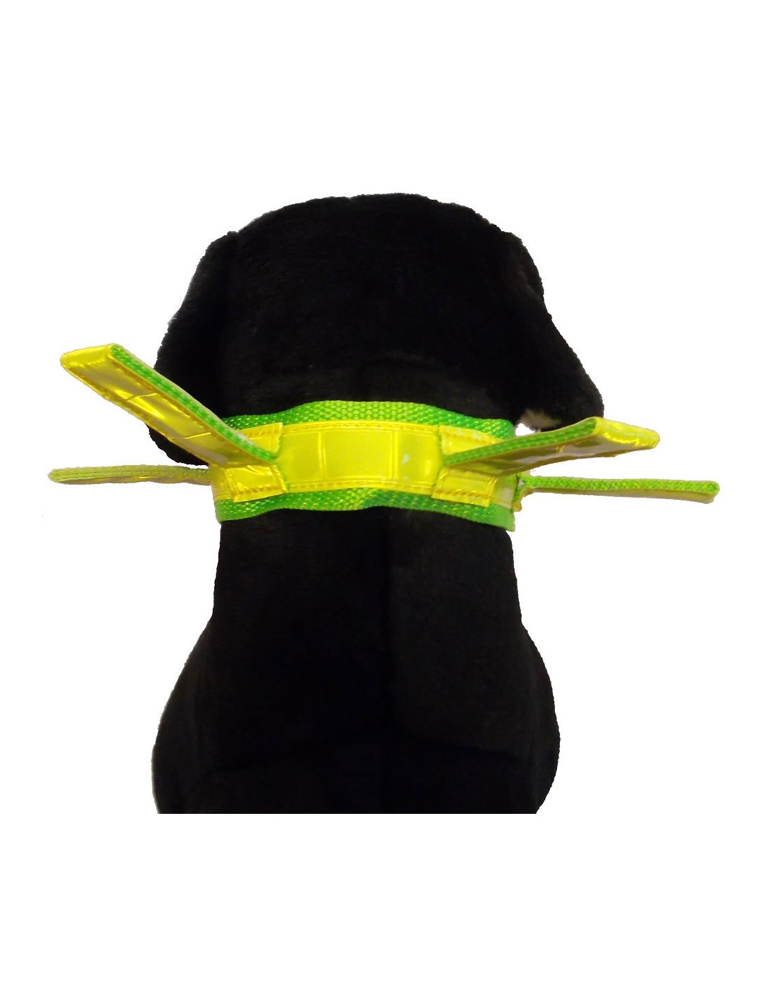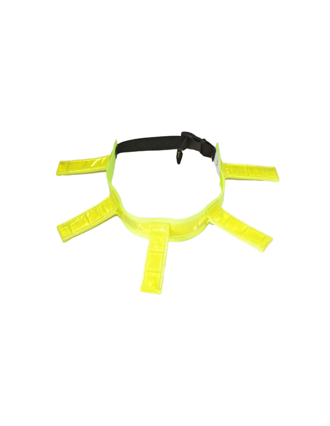 Ett reflexhalsband med utstående flärpar för bättre möjlighet att synas båda bakifrån o framifrån.