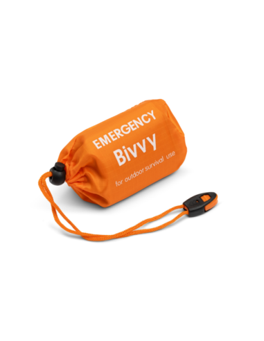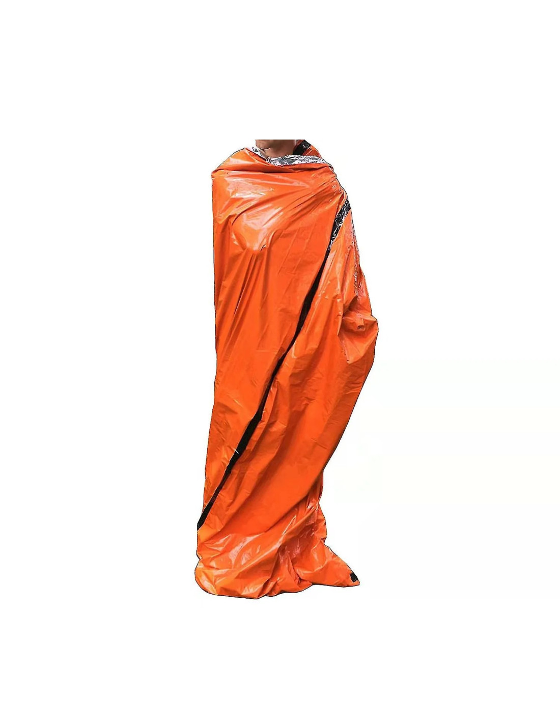 Nödsovsäck i lättviktsmaterial. Aluminiumfolierad insida som reflekterar och bevarar värmen i nödsituationer.