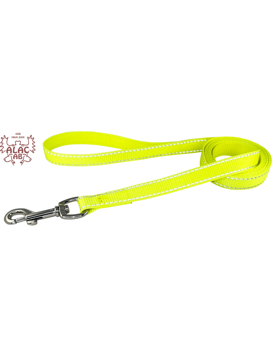 Svensktillverkad. Reflexkoppel poly 190cm, med hake, sytt, enfärgat band och invävd reflex.