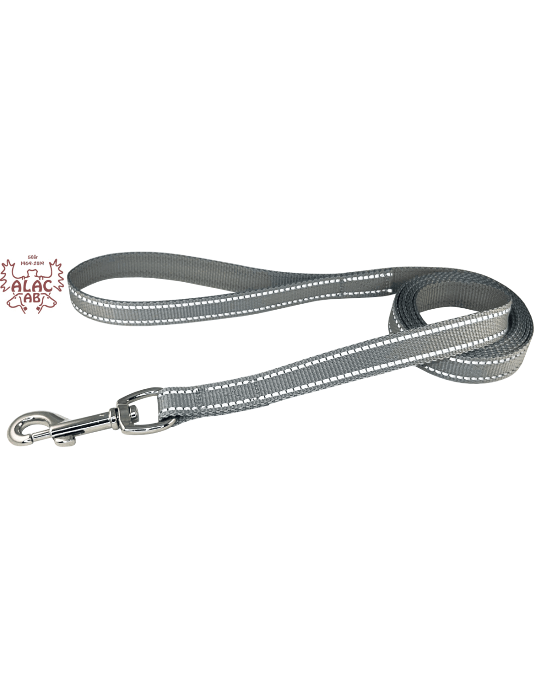 Svensktillverkad. Reflexkoppel poly 190cm, med hake, sytt, enfärgat band och invävd reflex.