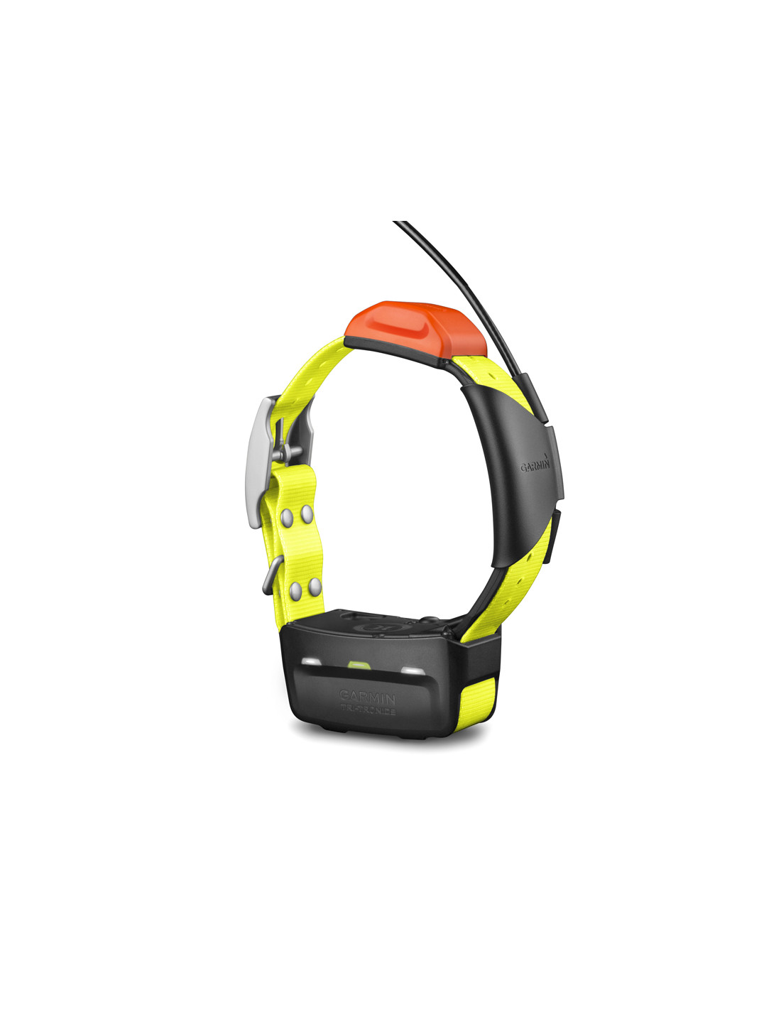 Garmin T5X Hundhalsband har en toppmonterad, högkänslig mottagare med GPS och GLONASS, så att du kan spåra din hund från upp till 14,5 kilometer bort. Den har en robust design och är vattentålig ned till 10 meter (1 ATM) så den är tillräckligt tålig för att följa din hund vart den än tar vägen. Dessutom kan du fokusera på jakten istället för på nästa laddning med upp till 80 timmars batteritid och viloläge via fjärrstyrning. LED-lampor, som aktiveras från din kompatibla handenhet, hjälper till att hålla koll på din hund. Ljuset syns på upp till 90 meters avstånd och fungerar både vid svagt ljus och på natten. T 5X levereras med en gul halsbandsrem.