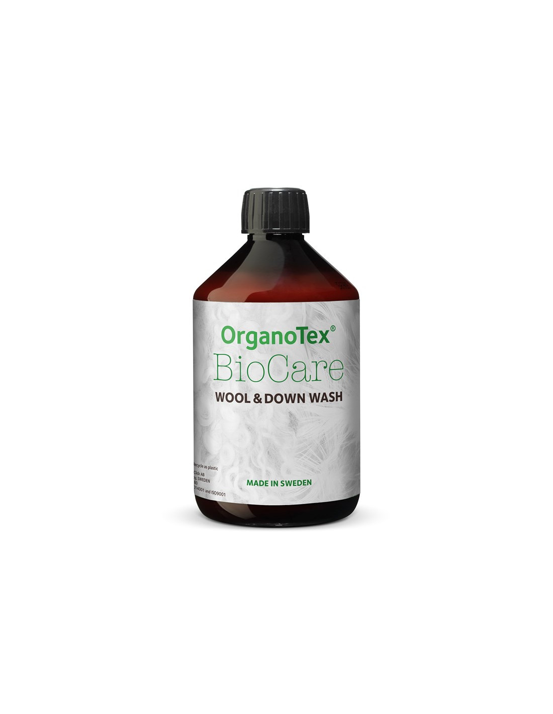 BioCare Wool & Down Wash är ett biobaserat fintvättmedel för ull och dun. Tvättmedlet innehåller lanolin, ullens naturliga fett, som återskapar ullens och dunets naturliga bra egenskaper. Innehåller även citroneukalyptusolja som har en antibakteriell funktion samt att den ger en svag fräsch doft. Dunplagg eller dunsovsäckar i nylon/ripstop som är i blankare material tar inte skada och bibehåller sin glans. När vattnet inte längre pärlar av dunjackan, kan plagget återimpregneras med OrganoTex Spray-On eller Wash-In Waterproofing för att förbättra vattenavvisningen.