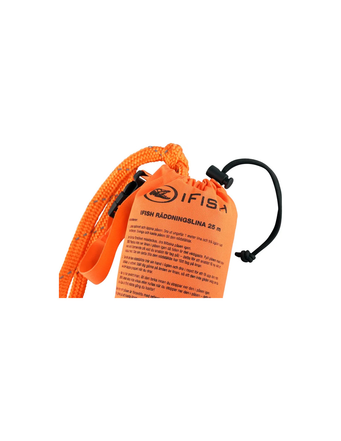 IFISH Räddningslina är en livräddningsutrustning designad för att snabbt och enkelt kastas till en nödställd. Linan är 25 meter lång och viktad för att göra kastet enkelt och precist. Både påsen och linan har reflexer för att synas bättre i mörker och dåliga ljusförhållanden, vilket gör den perfekt för isfiske och andra aktiviteter nära vatten.
