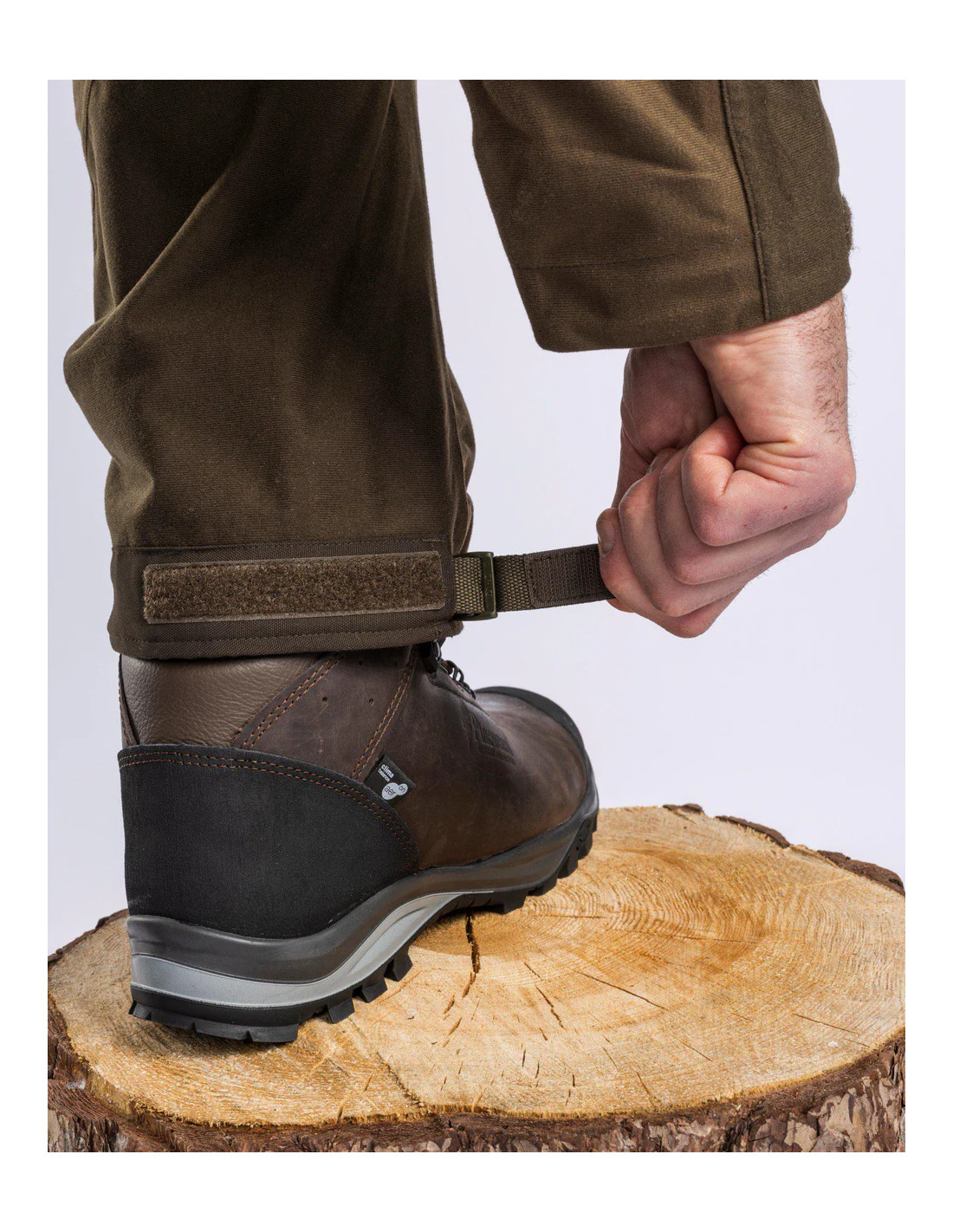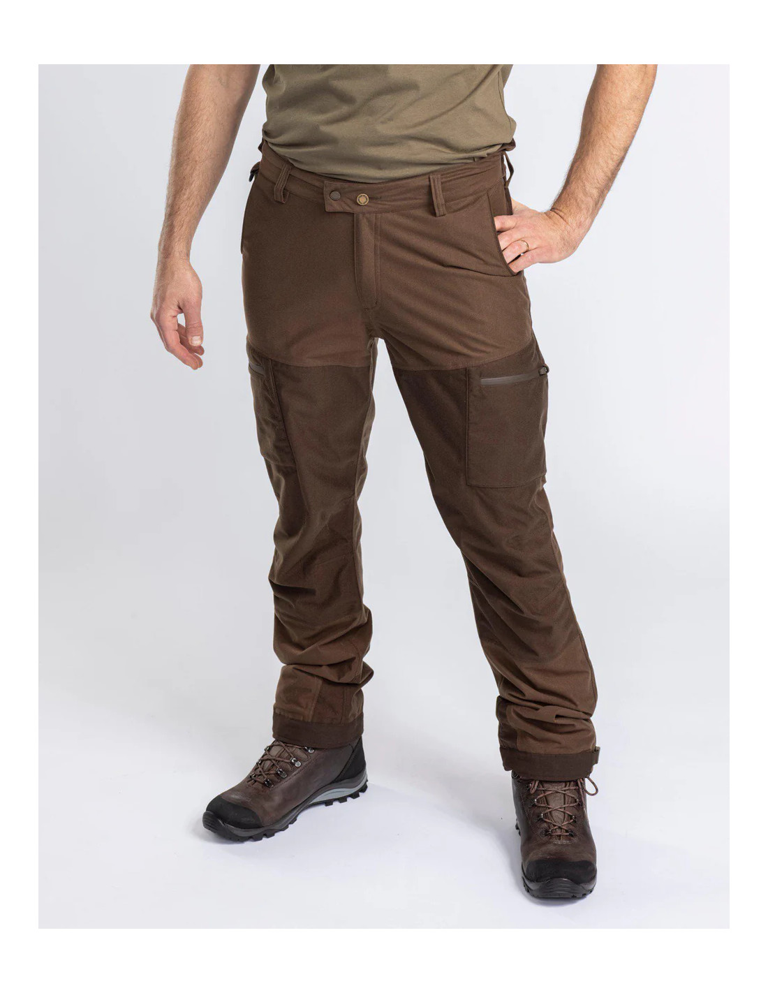 En smidig jaktbyxa med elastisk midja. Normal passform. Ammunitionshållare inuti benficka. Ventilation längs sidorna. Tejpade sömmar. Justerbara benslut. Kängkrok.