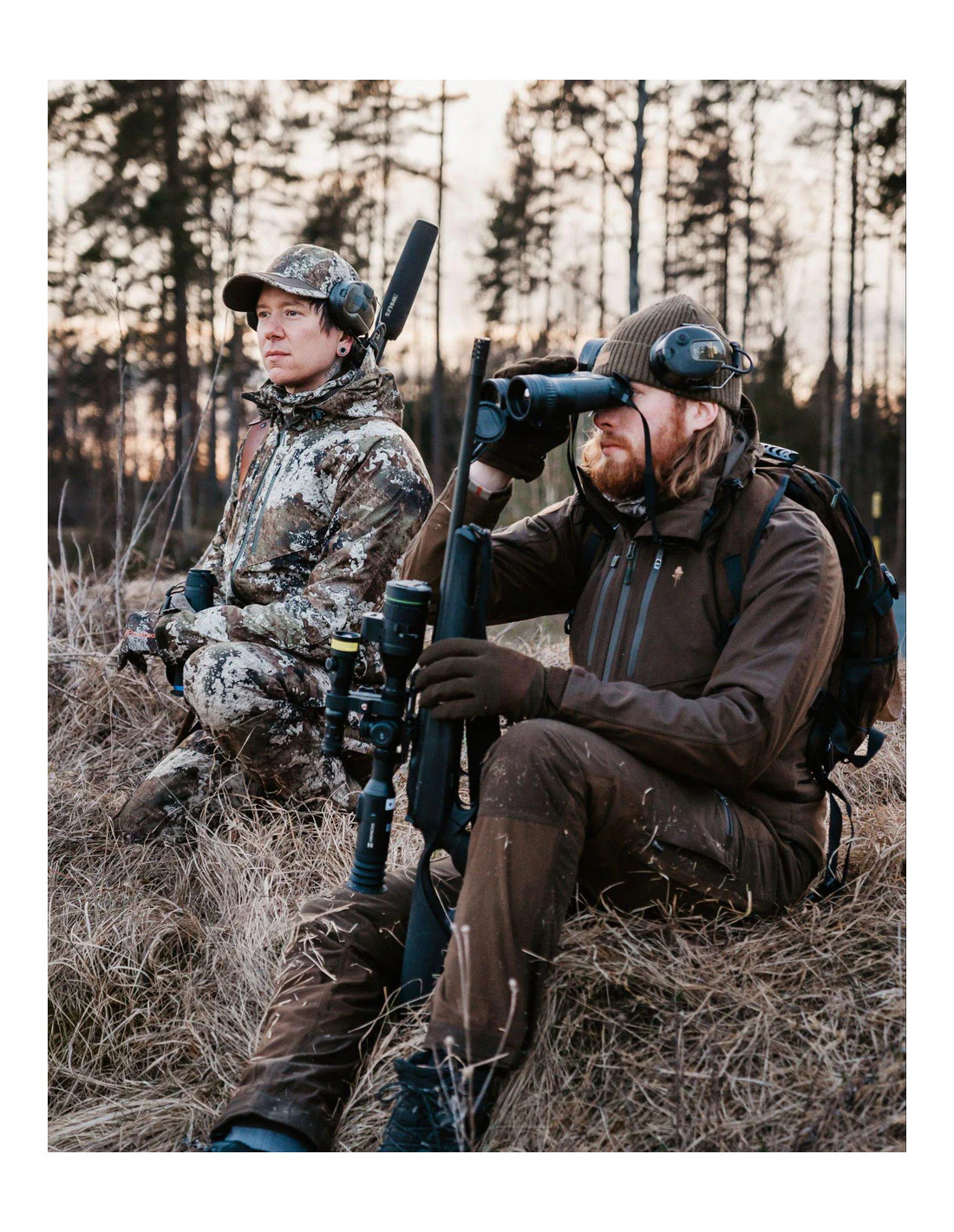 En smidig jaktbyxa med elastisk midja. Normal passform. Ammunitionshållare inuti benficka. Ventilation längs sidorna. Tejpade sömmar. Justerbara benslut. Kängkrok.