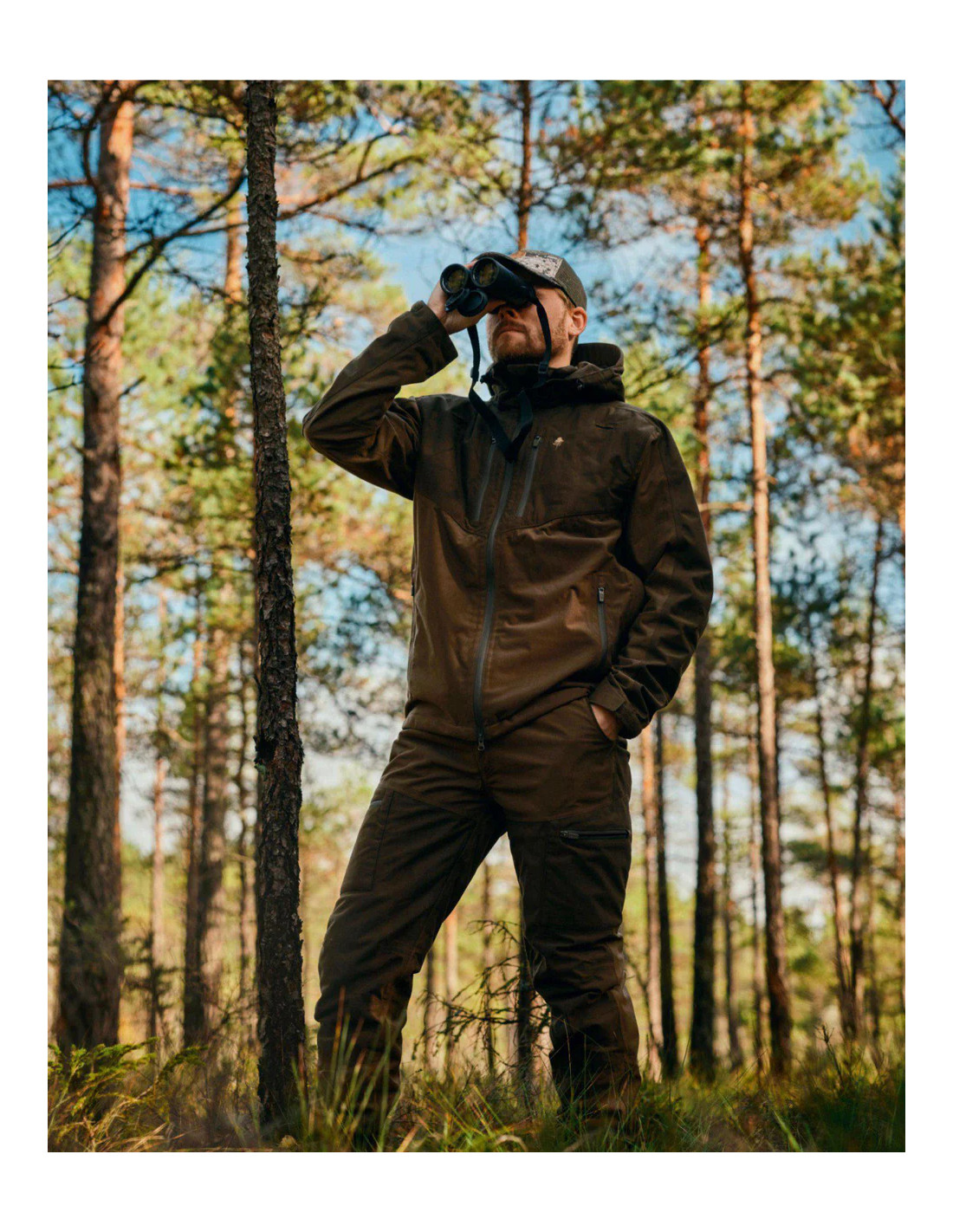 Tysta jaktbyxor med lätt vikt för den aktiva, rörliga jägaren, hundföraren eller hundtränaren. Slitstarka med vind- och vattentätt funktionsmembran. Tillverkade i 100% återvunnen polyester.