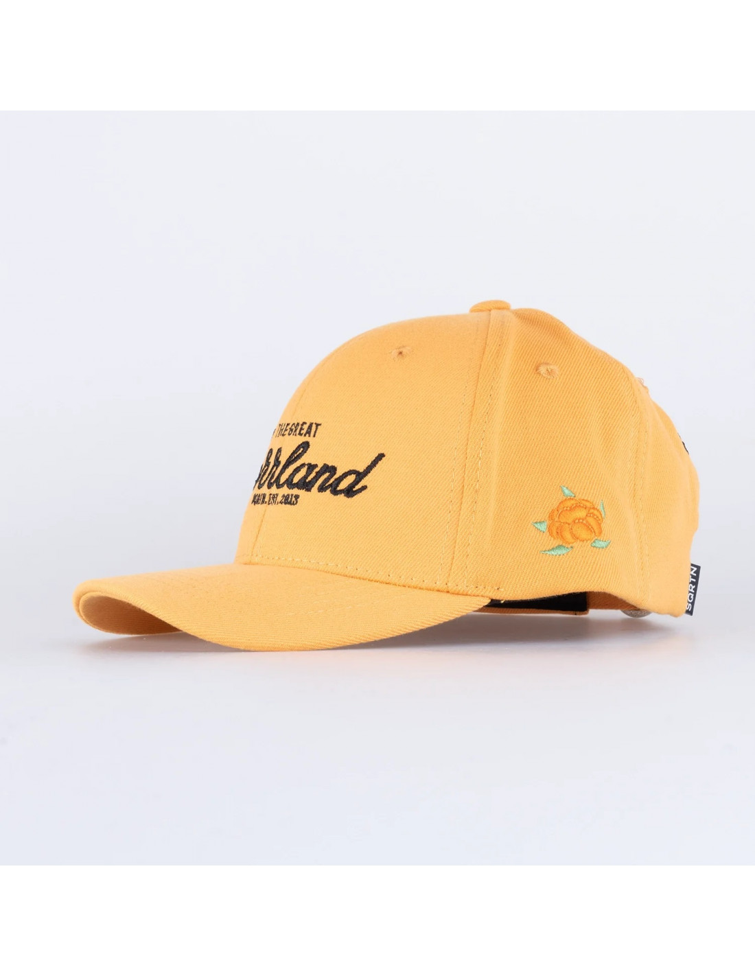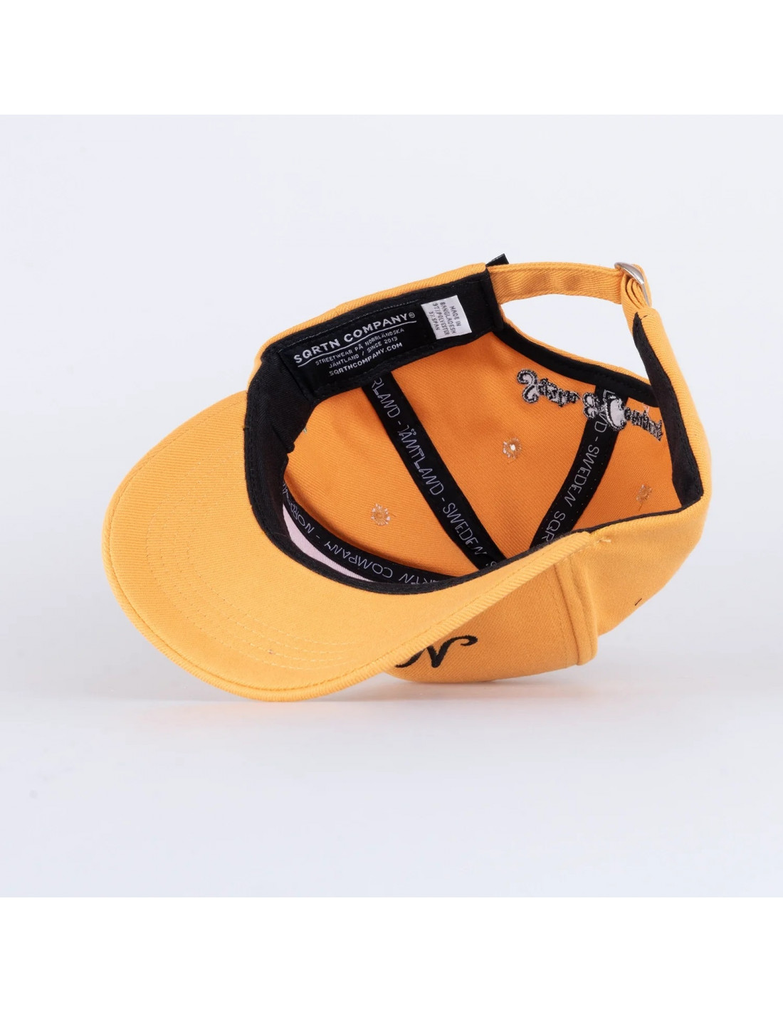 Strapbackkeps med brodyrer på flera ställen.