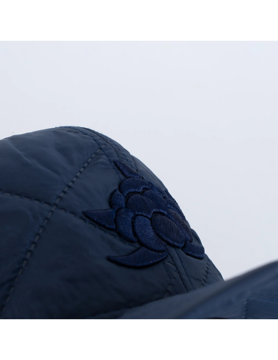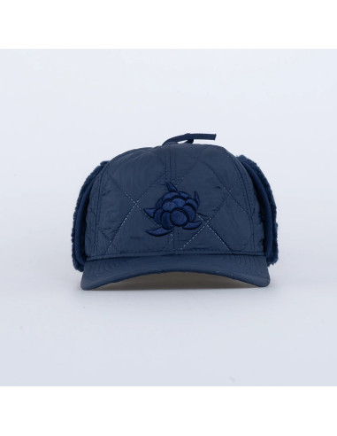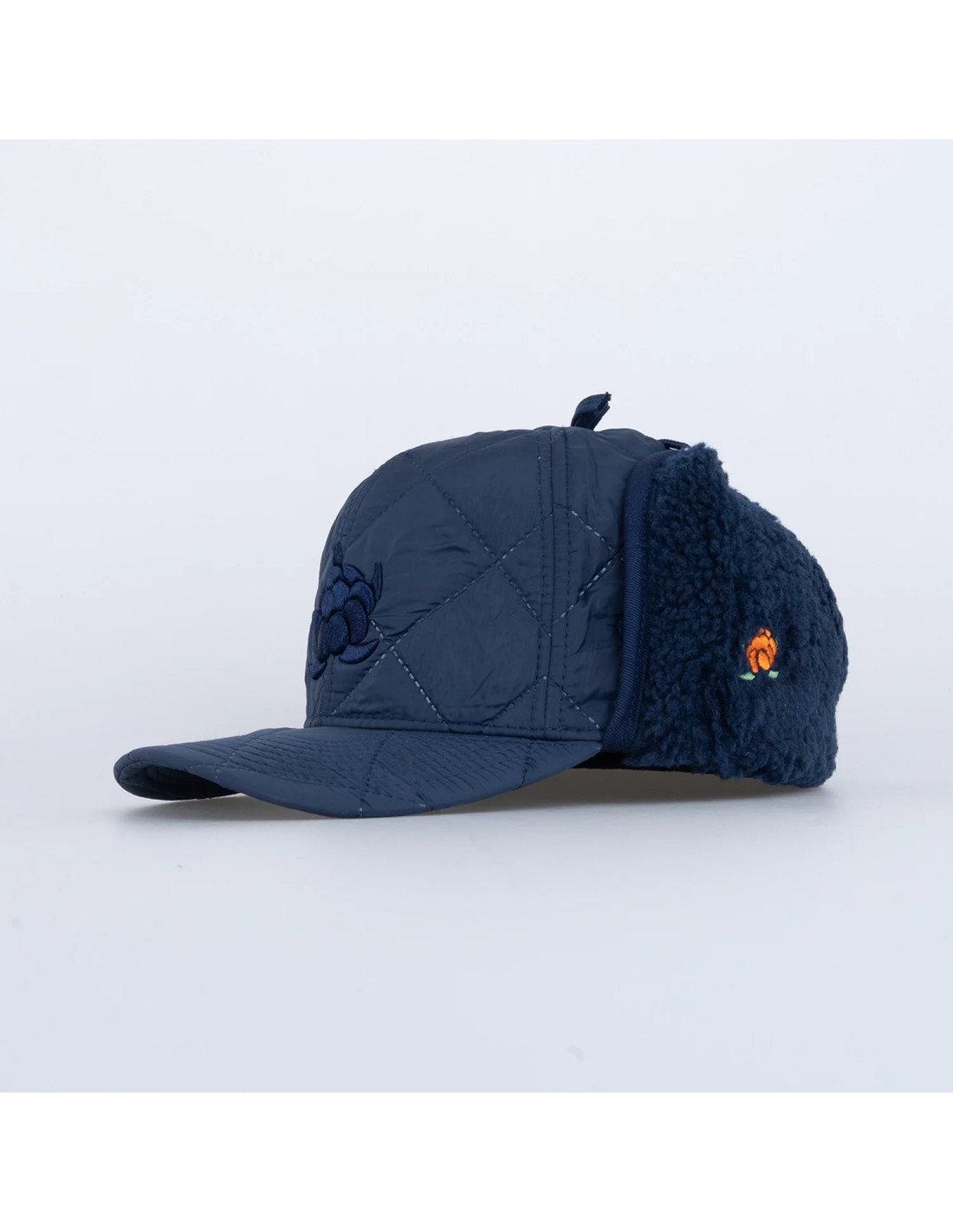 Keps med dragsko bak, brodyrer på flera ställen samt foder i fleecematerial.