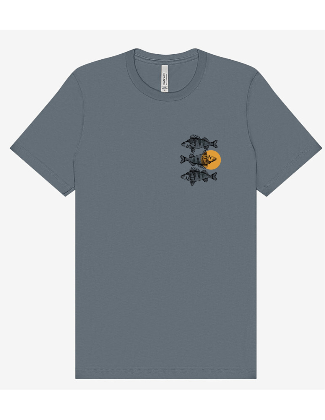 ABBORRDRÖMMAR TEE är en ny tappning på vår ritade abborre, nu i en minimalistisk tappning med inspiration från japansk konst och deras vackra koi-karpar.