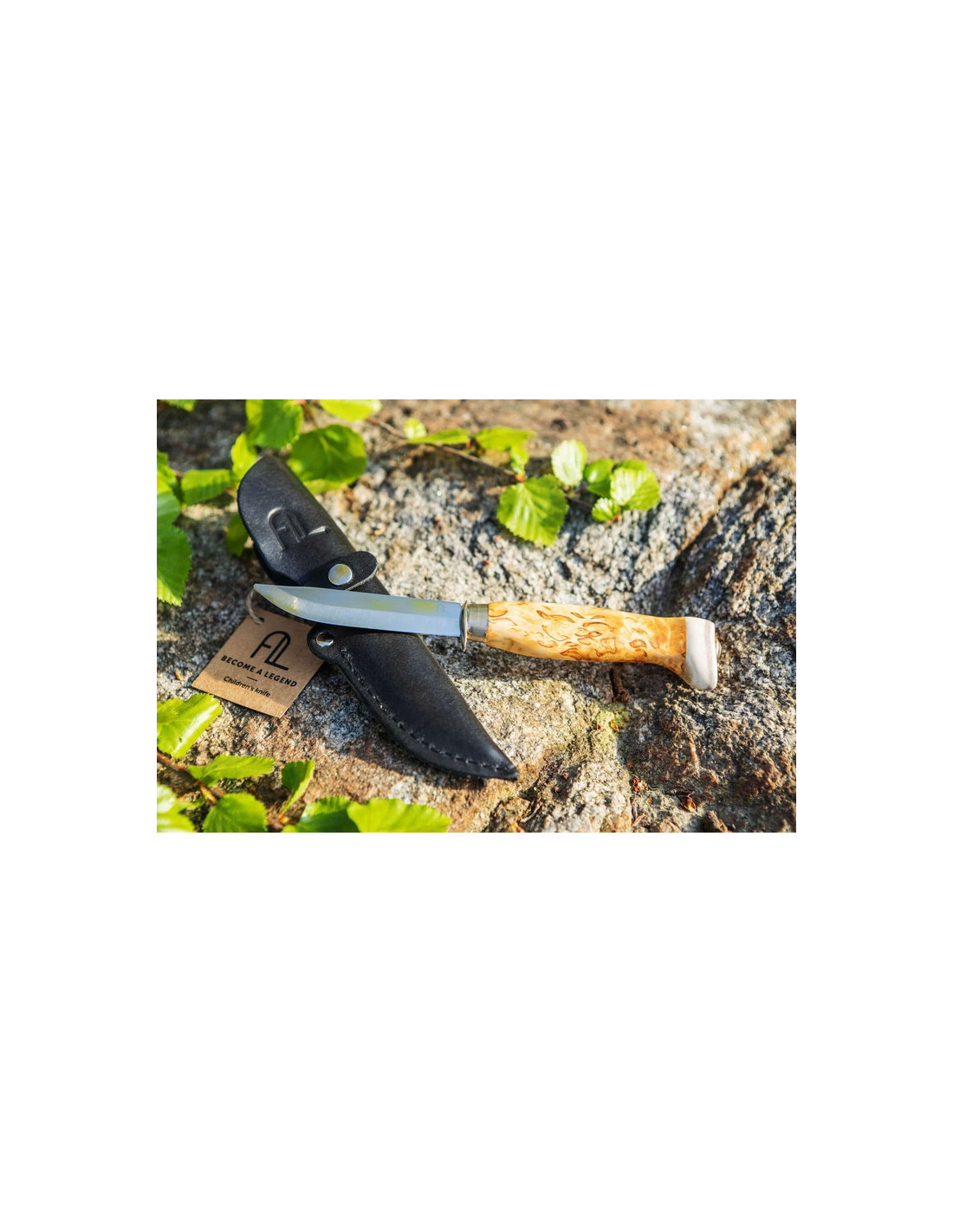 Rostfritt stål med handtag i Masurbjörk och renhorn