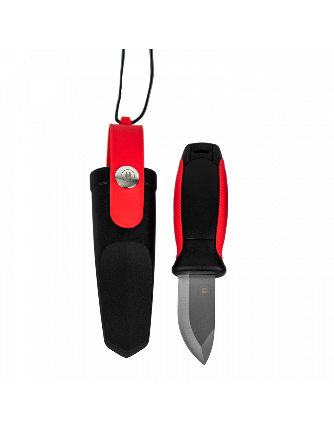 Alces Jakt- och fiskekniv är en liten och behändig kniv med kort blad som passar perfekt att ha med sig i skogen eller på fisketuren. Knivens blad är dubbeleggad och är tillverkad i rostfritt stål (440A), och har ett mycket greppvänligt handtag. Levereras med hölster, samt ett praktiskt snöre som gör det möjligt att t.ex hänga den runt halsen och därmed ha den nära till hands.