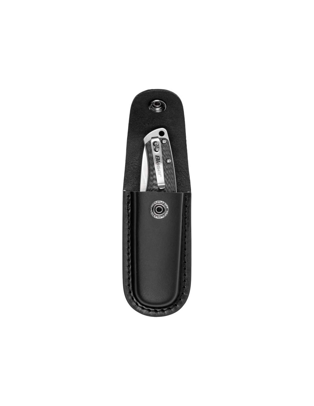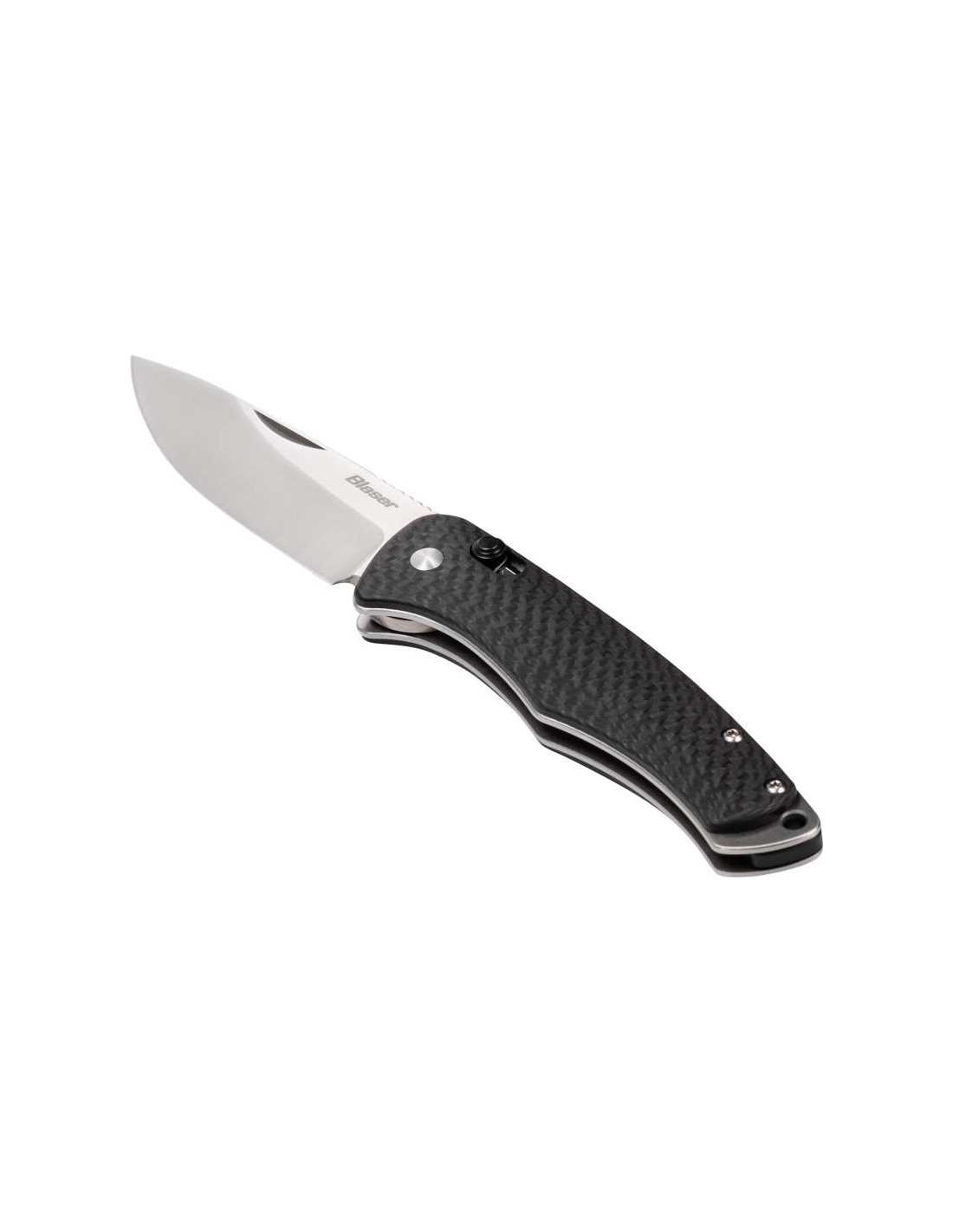 Blaser Ultimate Carbon-Fiber Folding Knife är en lätt, högkvalitativ kolfibervikkniv som bara väger 87 g, lämplig för alla som letar efter ett utmärkt allroundverktyg. Kniven har en liknande stil som Blaser kolfiberstockar och kan antingen fästas i ett bälte i det eleganta läderslidan eller förvaras direkt i din jacka eller byxficka med den djupa bärfickan. Det 2,7 mm tjocka drop-point-bladet gör kniven idealisk för alla dina utomhus- och jaktaktiviteter. Utöver detta säkerställer en användarvänlig bultlåsmekanism att kniven låser vid öppning, vilket gör den mycket enkel och säker att använda. Det 7,7 cm långa bladet är tillverkat av CPM S35VN stål, vilket ger kniven mycket bra egghållning. Den kemiska sammansättningen av detta stål ger det också mycket god slitage- och korrosionsbeständighet. Kombinationen av blad och stål säkerställer hög kvalitet och långvarig skärpa. Det ergonomiska, robusta kolfiberhandtaget gör kniven lätt att hålla och sviker dig aldrig, inte ens i våta förhållanden. Säker och pålitlig – Blaser Ultimate fällkniv i kolfiber. Ett måste-objekt!