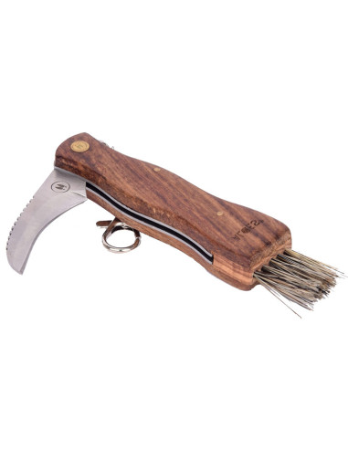Svampkniv i rostfri med träskaft . Denna kniv är det ultimata verktyget när du är och plockar svamp. Vasst blad och borste för att lätt kunna rensa svampen innan du kommer hem. Vi alla vet att rensa svamp när man kommer hem är inget roligt.