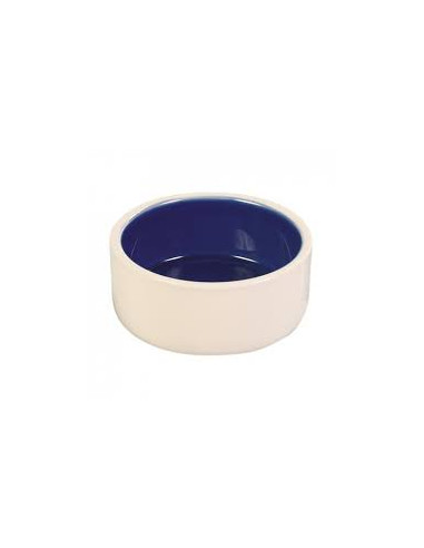 Klassisk mat- eller vattenskål. Krämvit utsida och blå insida, tillverkad i glaserad keramik som tål maskindisk.
