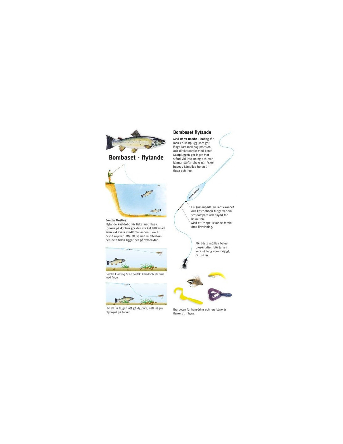 Komplett set med kastdobb, Darts Bomba, Lekande, Gummipärlor och några bra flugor för ett lyckat fiske. Detta set innehåller, precis som alla andra set från Darts, utförliga tackeltips och beskrivningar i text och bild.
