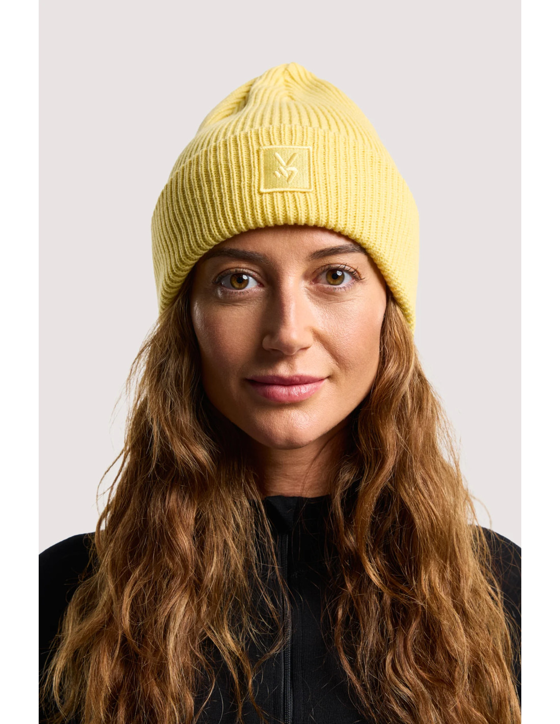 En ribbstickad mössa i mjuk merinoullsblandning med dubbelt uppvik och avslappnad passform. Den följsamma designen gör att mössan sitter skönt på huvudet, och uppviket ger extra värme. Den påsydda ton-i-ton-badgen ger en stilren detalj.