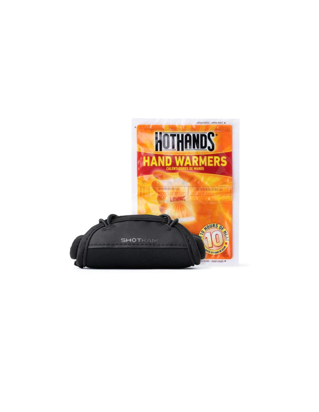 Detta ShotKam-fodral gör det möjligt att använda din ShotKam-kamera vid temperaturer så låga som -12°C . Aktivera en handvärmare och placera den i fickan på ditt nya ShotKam-fodral och placera sedan skyddet runt din ShotKam-kamera