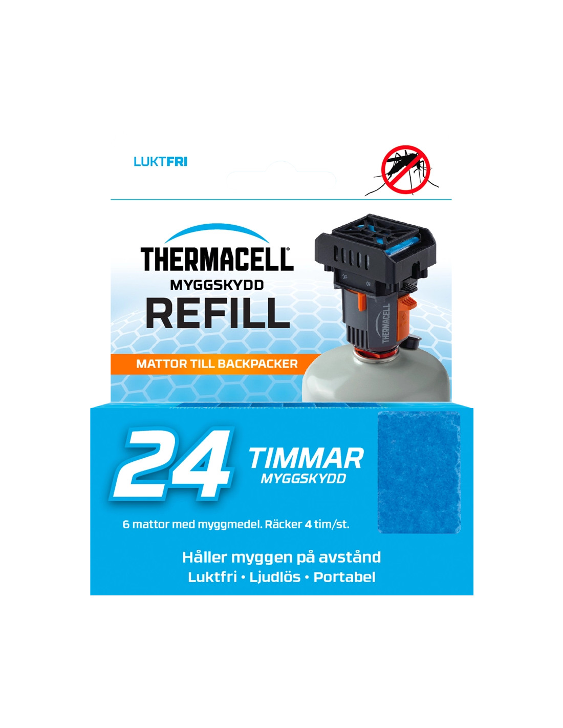 Thermacell Refill 24h Backpacker, Innehåller 6 myggskyddsmattor som ger 24 timmars effektivt myggskydd.