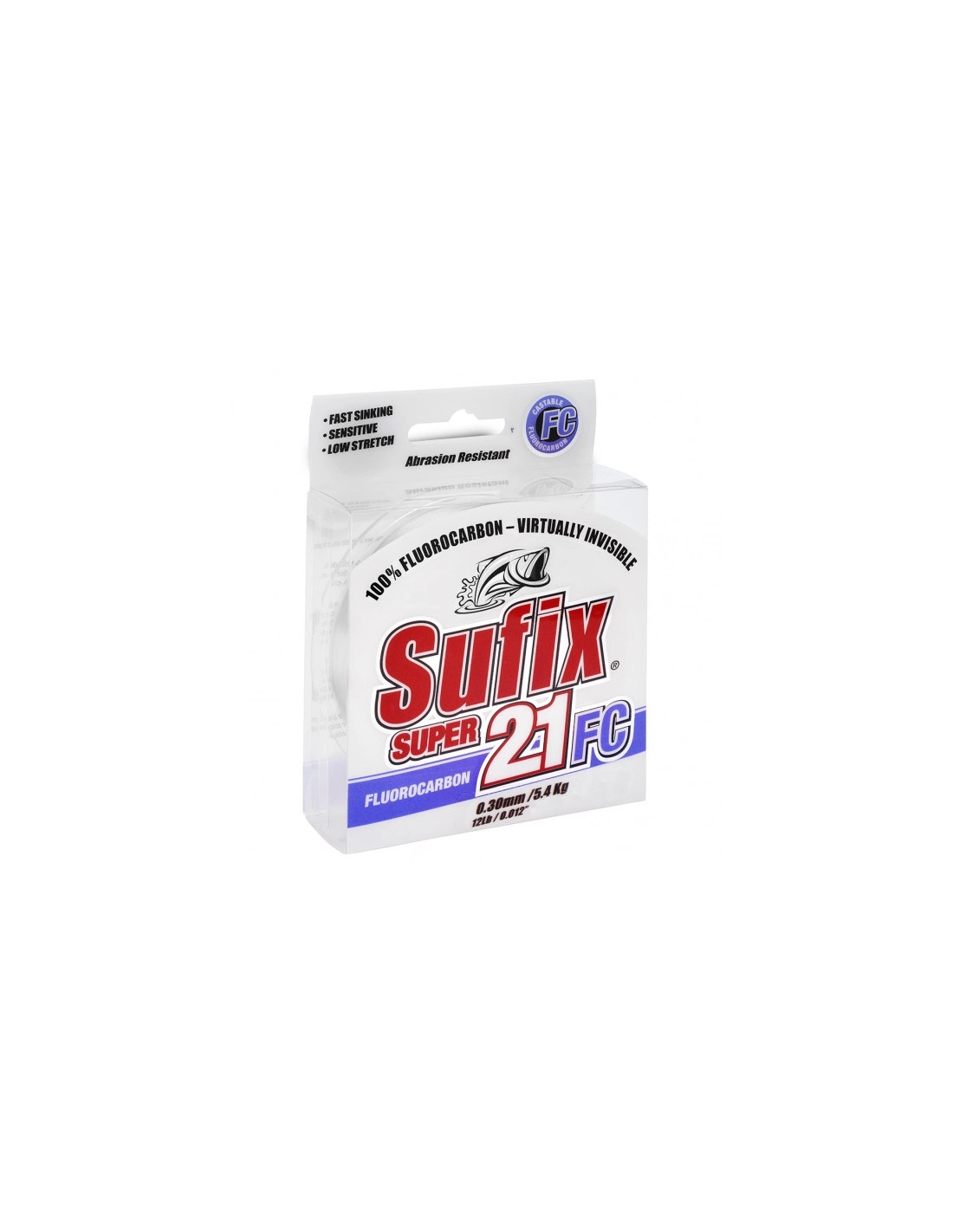 Sufix Super 21 Fluorocarbon är praktiskt taget osynlig i vattnet och erbjuder en enorm nötningstålighet. Linan har väldigt låg töjningsförmåga, vilket ger tydliga hugg, utmärkt krokning även på långa avstånd och perfekt kontroll. Fluorocarbon sjunker 4 gånger snabbare än vanlig nylon, vilket även gör materialet ytterst lämpligt som tafsmaterial.