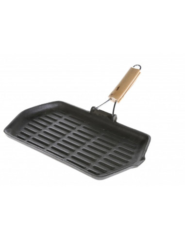 Grillpanna i gjutjärn. Fällbart trähandtag