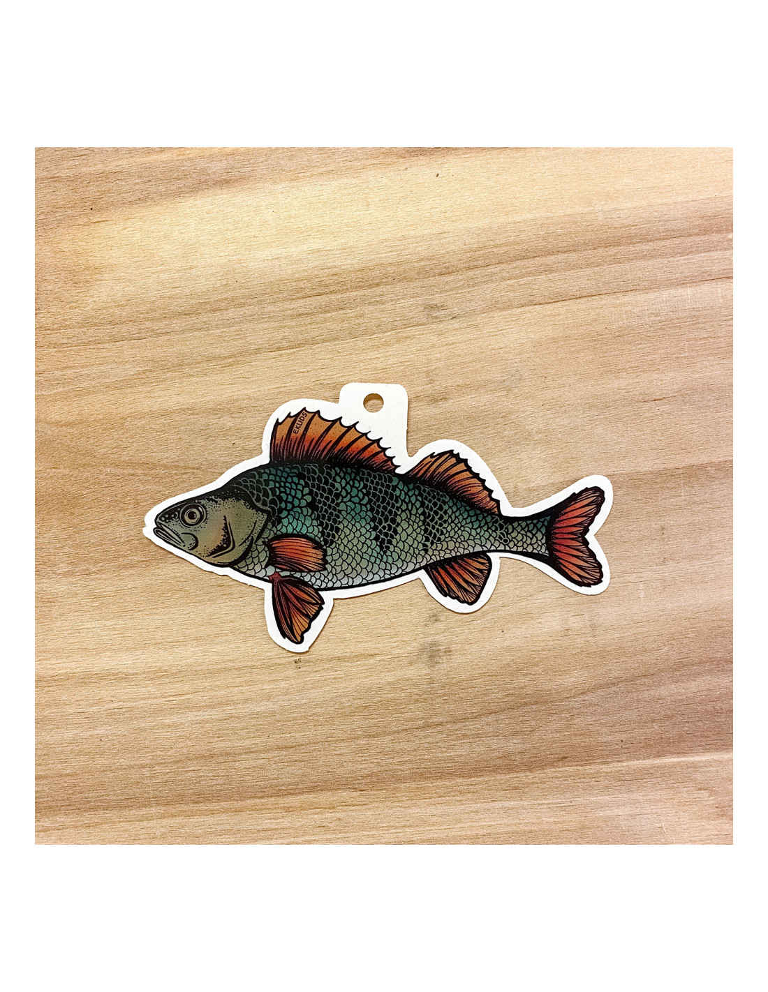 "Abborren" är ett högkvalitativt klistermärke att fästa på t.ex fiskelådan eller termosen.