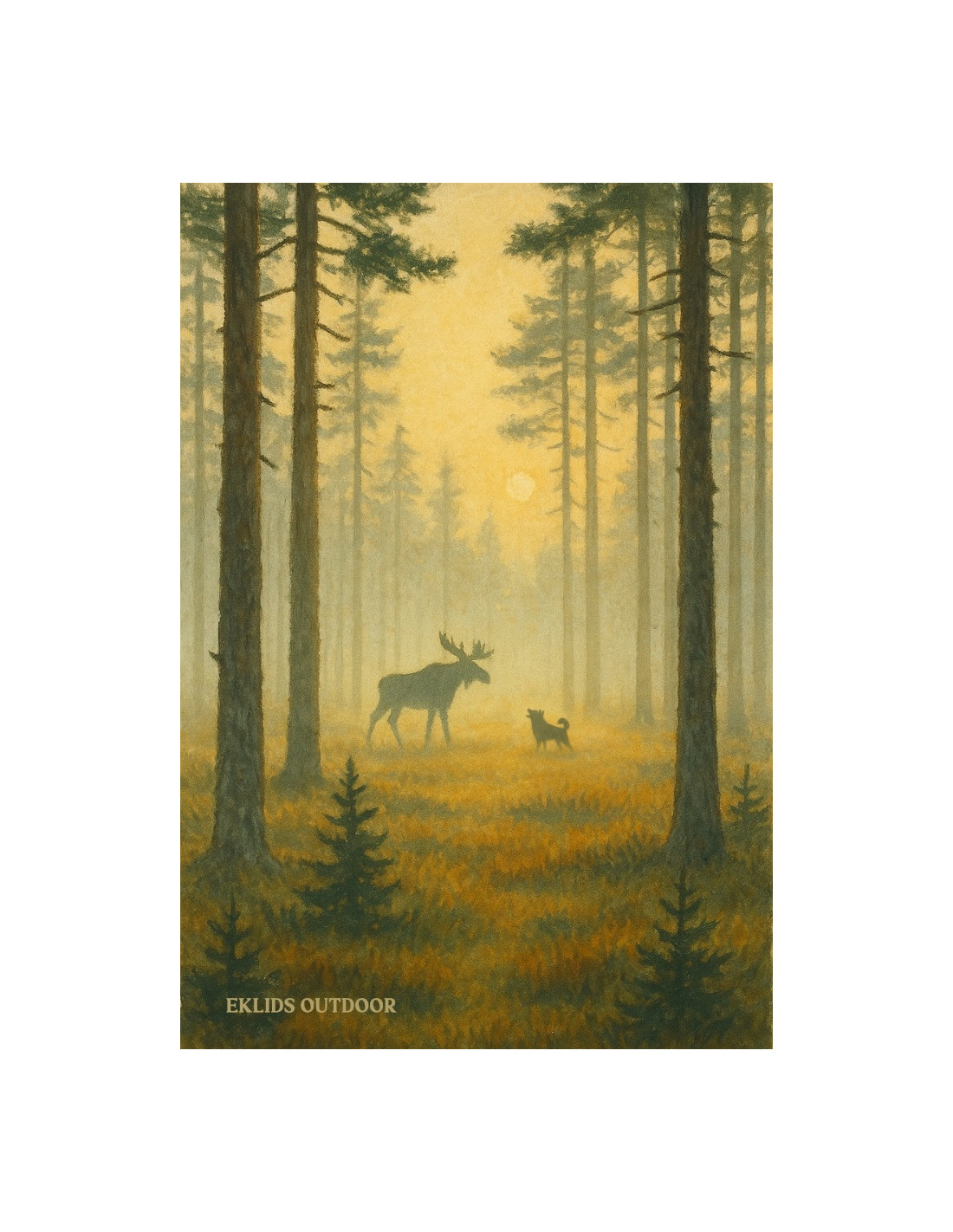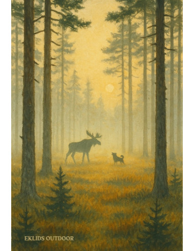 “Ståndskall” är en stämningsfull kylskåpsmagnet med motiv av älg och jakthund i morgondimman. En hyllning till den nordiska vildmarken och de magiska ögonblicken under jakten. Tryckt i hög kvalitet med naturtrogna färger som lyfter fram motivets djup och känsla. Perfekt för dig som uppskattar jakt, natur och nordisk vildmark.