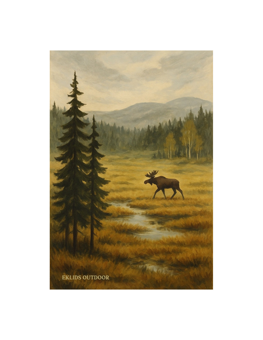 En vacker magnet med motiv av älgen – skogens mäktiga konung – som vandrar över myren i kvällsljuset. “Myrens Konung” fångar stillheten, friheten och den nordiska vildmarkens själ. En perfekt present till jägaren, naturälskaren eller dig som vill ha en bit av fjäll och skog hemma.