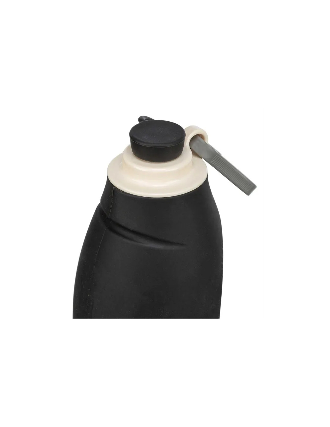 Vik ner silikonskyddet så bildas en skål, och öppna locket för att fylla på. Praktiskt, lätt och perfekt att ha med i väskan eller fästa på bältet när ni är på språng.