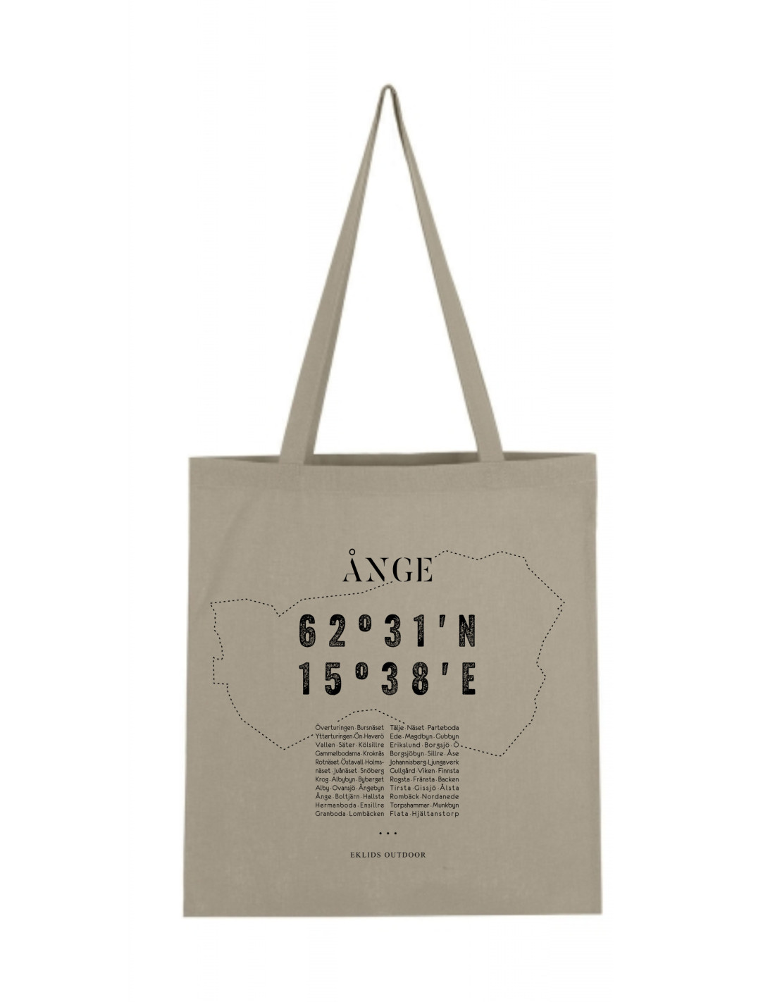 EKLIDS x ÅNGE är en hyllning till vår fina kommun, med kommungränsens linjer som ramar in kommunens koordinater i en minimalistisk layout.