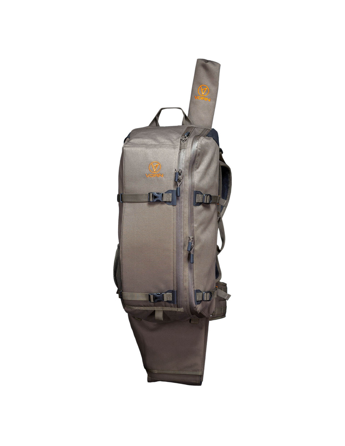 Den kompakta jaktryggsäcken VORN EV30 erbjuder 30 liter utrymme för jakttillbehör. Ett rymligt huvudfack kan lastas från sidan och erbjuder plats för en vätskebehållare på upp till 3 liter . Två extra fickor ger ytterligare förvaringsutrymme för jakttillbehör. Det stora huvudfacket gör ryggsäcken lämplig för dagsutflykter med större utrustning. Om den är mindre tungt lastad kan den spännas med hjälp av surrningsremmar. Detta minimerar risken för att fastna i grenar med ett onödigt stort bagage.