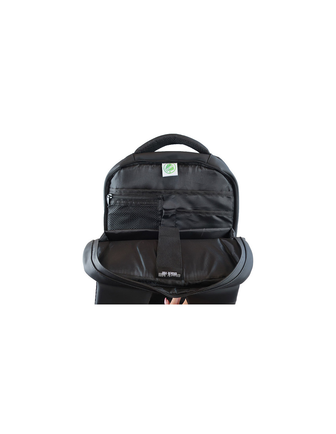 Ryggsäck med nytt modernt utseende. Ryggsäcken l är tillverkad i PU-läder och är vattentålig. Den är utrustad med ett vadderat laptopfack på baksidan av ryggsäcken och en reseavdelning på fronten.