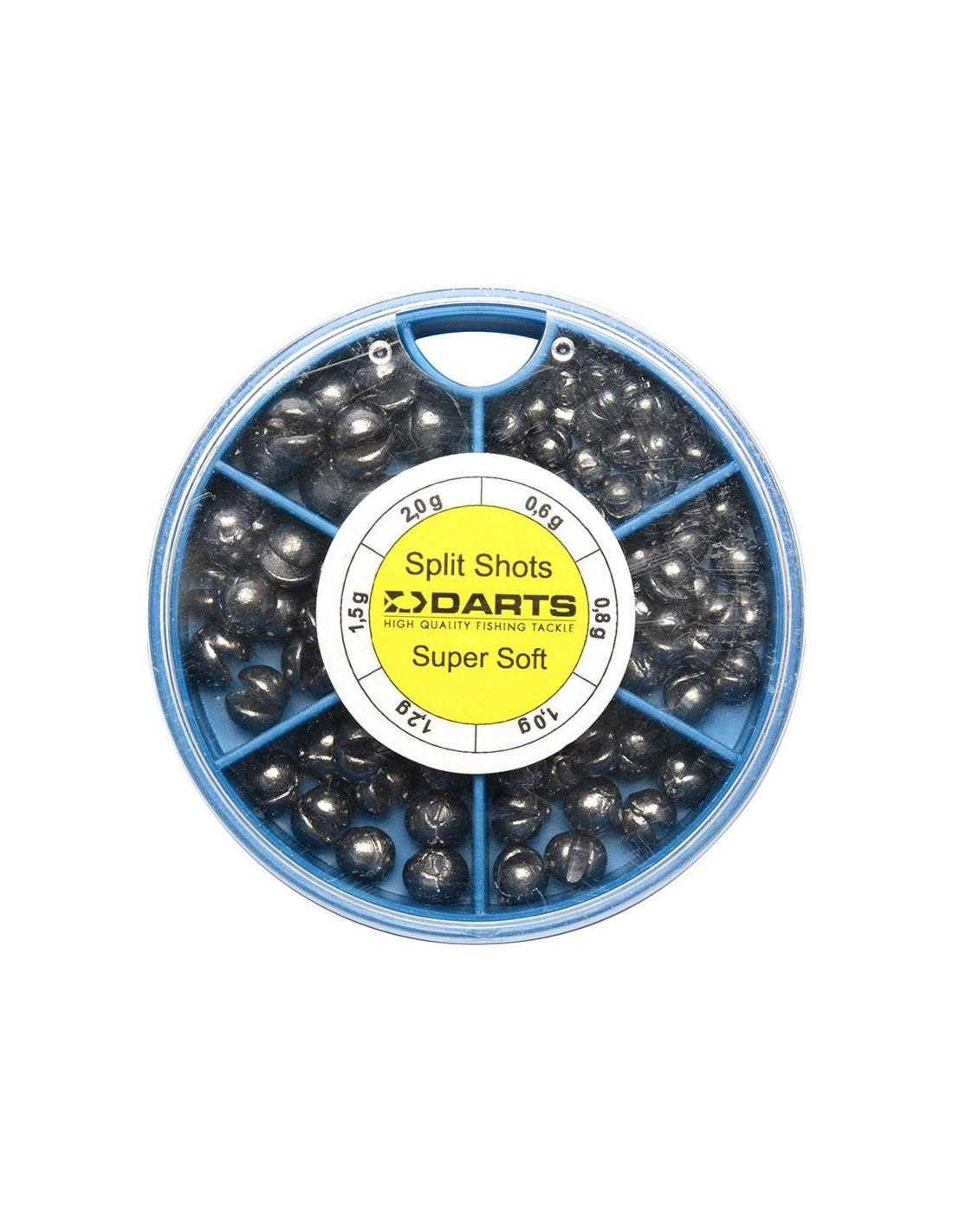 Praktiskt despenser med mjuka blyhagel i olika storlekar.
