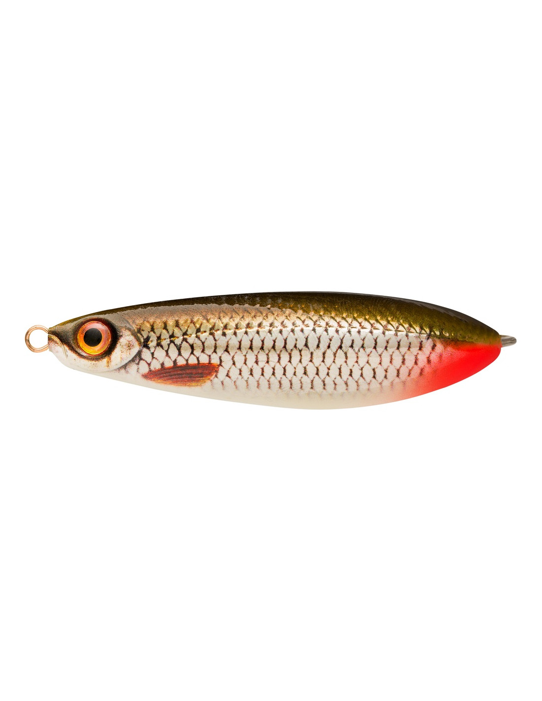 Minnow Spoon med vasskydd gör att du kan fiska effektivt bland sjögräs, näckrosor och vass. Betet simmar med vid vid slängande gång och fladdrar när det sjunker. gös/abborre/gädda/ädelfisk Vass 8cm i färgerna FT, MBT, PGR