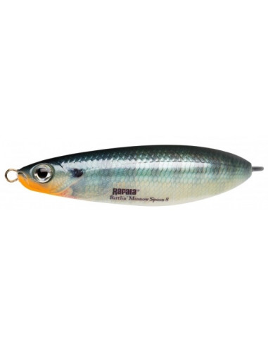 Minnow Spoon med vasskydd gör att du kan fiska effektivt bland sjögräs, näckrosor och vass. Betet simmar med vid vid slängande gång och fladdrar när det sjunker. gös/abborre/gädda/ädelfisk Vass 8cm i färgerna FT, MBT, PGR